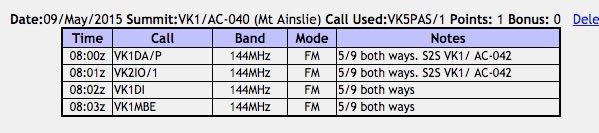 Whilst Trevor was on air, Andrew called me over for a 2m FM contact with Gerard VK2IO who was portable on SOTA peak, Mount Ainslee, VK1/ AC-040.