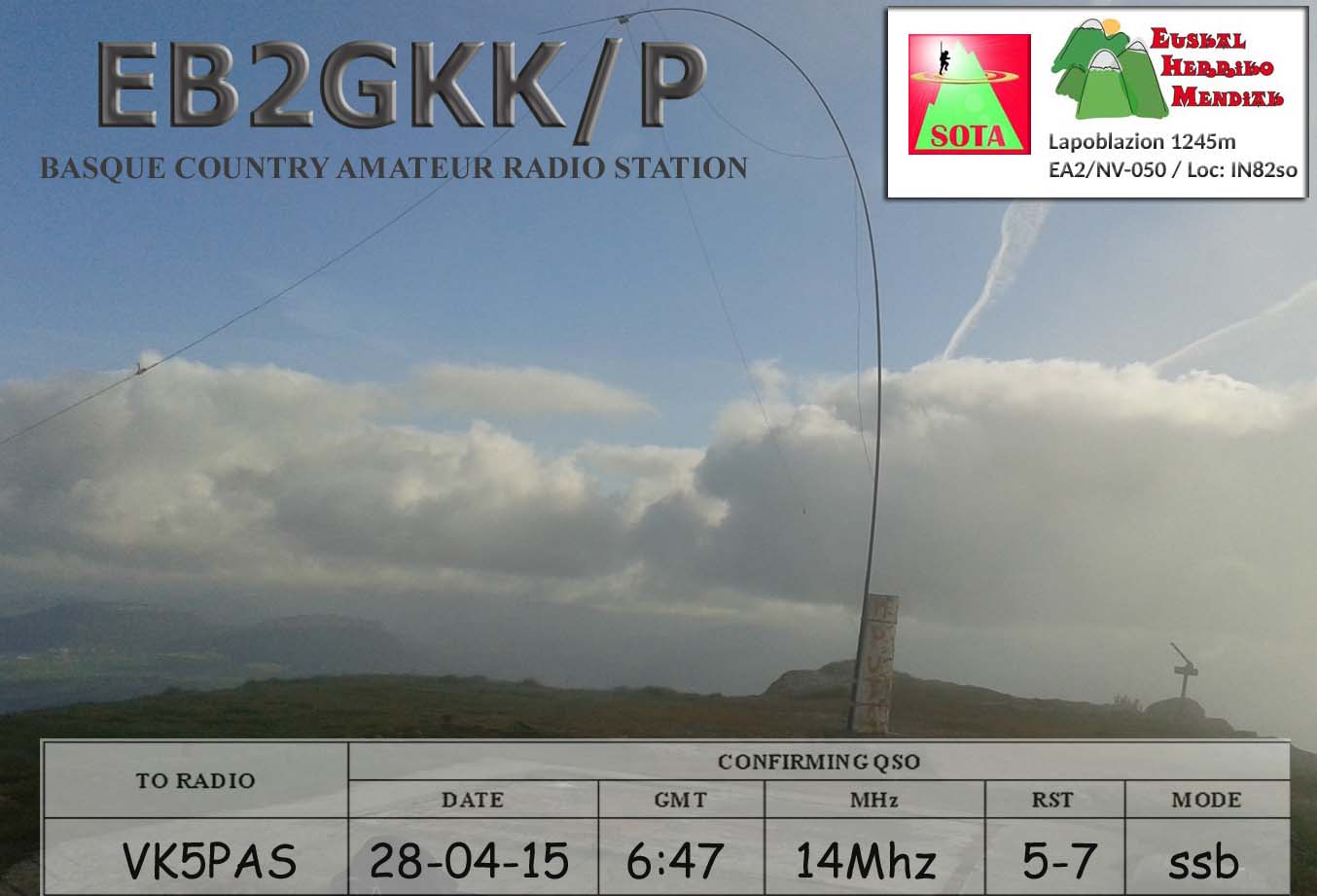 The second is from Inaki, EB2GKK who was operating from SOTA summit, Lapoblazion EA2/ NV-050 in SPAIN.