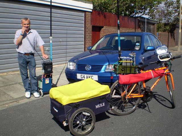 Above:- Dave’s pedestrian mobile and bicycle mobile set up. Courtesy of his QRZ.com page.