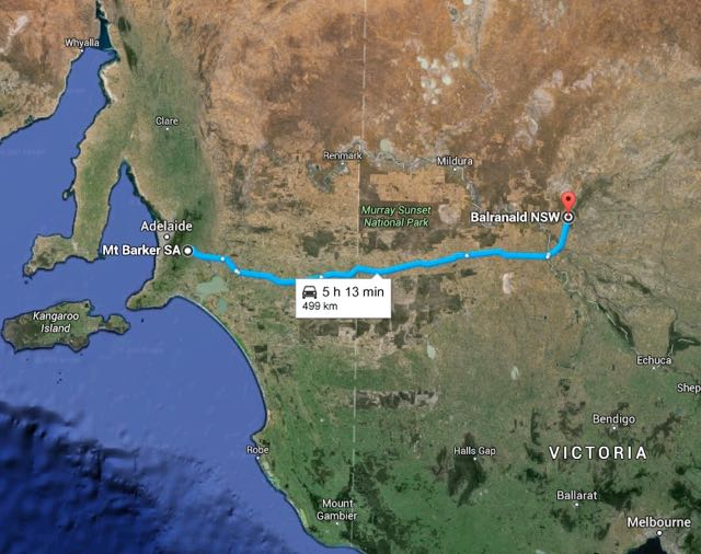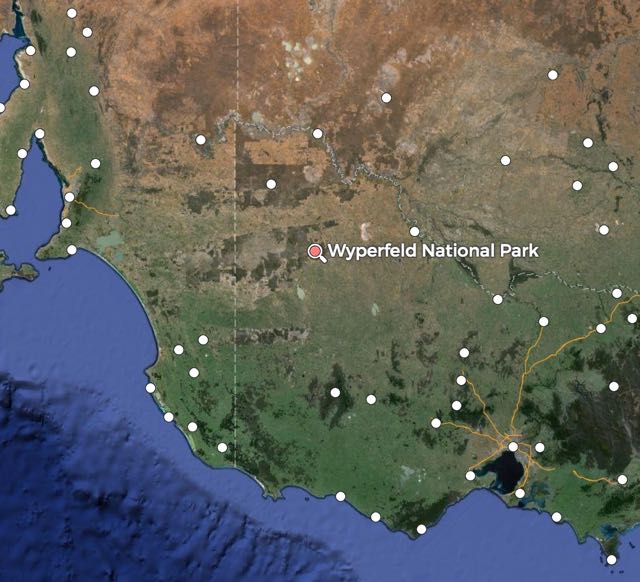 Above:- Map showing the location of Yanga National Park in New South Wales. Image courtesy of google maps