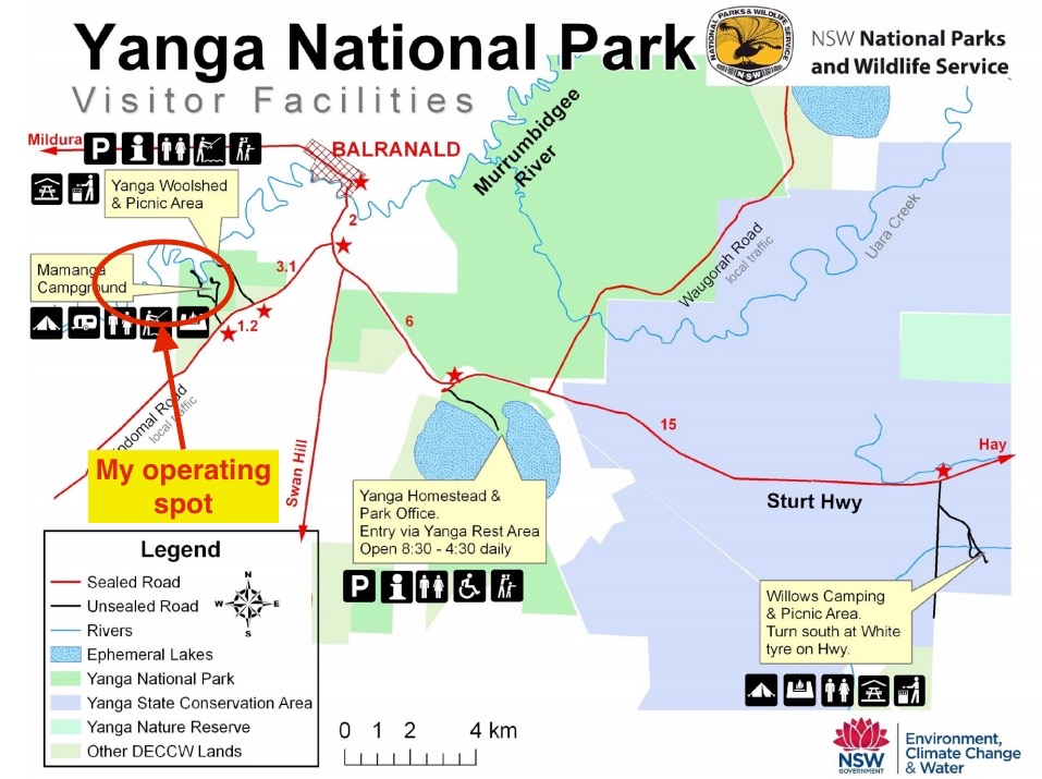 Above:- Map of Yanga National Park, showing my operating spot. Image courtesy of