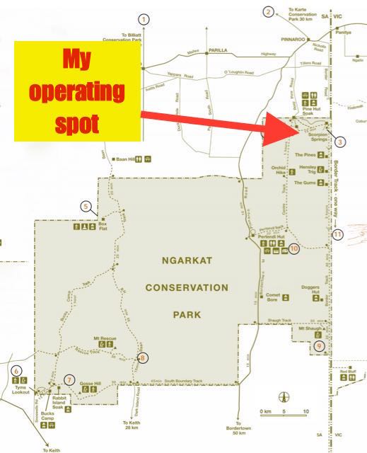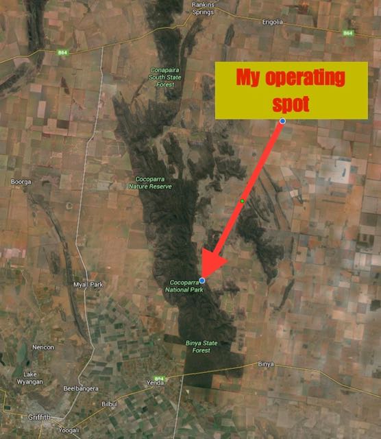 I started calling CQ on 7.144 and was rather cautious after propagation on the band the day before whilst at Peebinga Conservation Park. Conditions then were very very difficult and I did not reach the 44 QSO threshold for WWFF. So I was sincerely hoping that the conditions had improved for this activation.