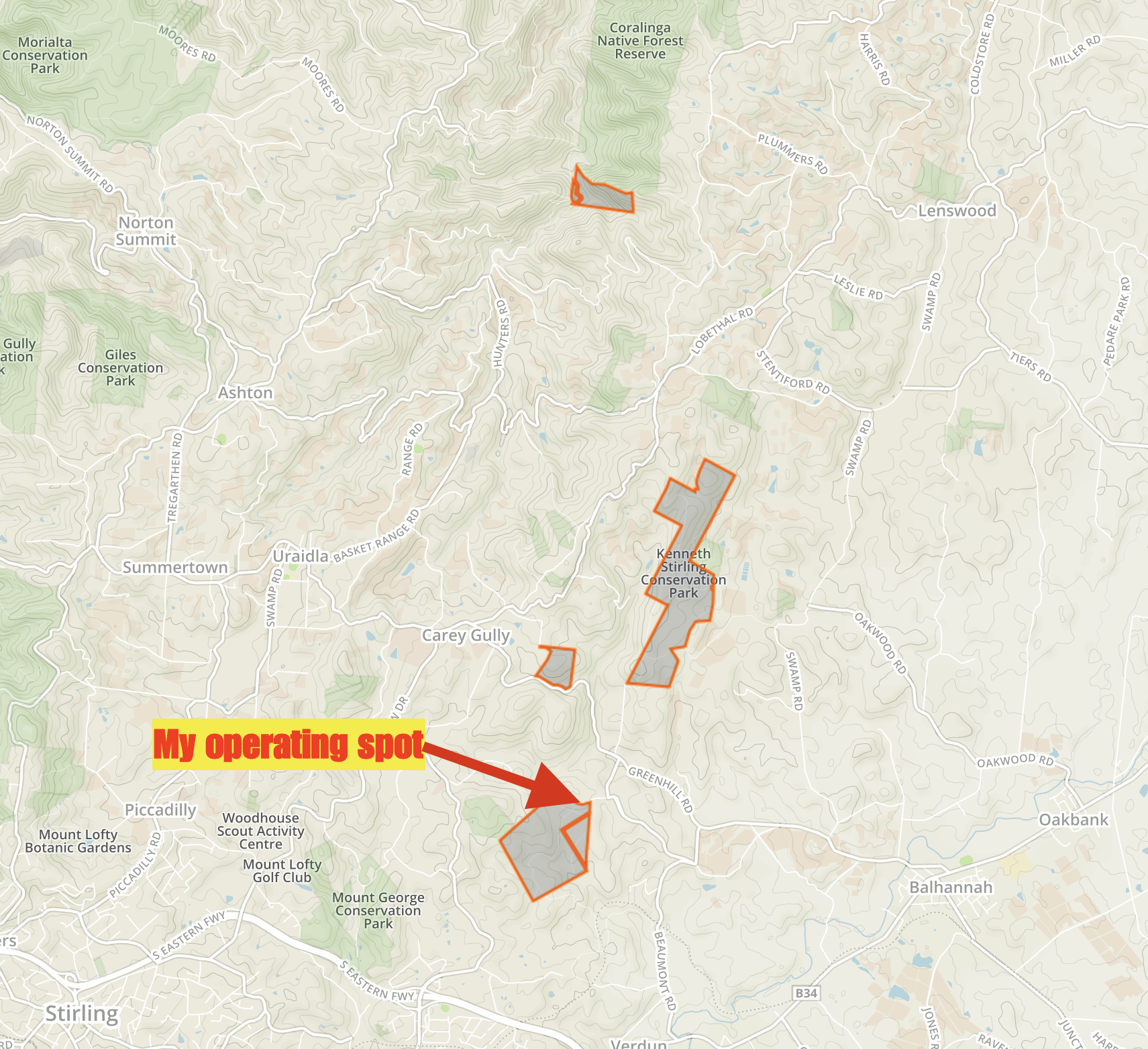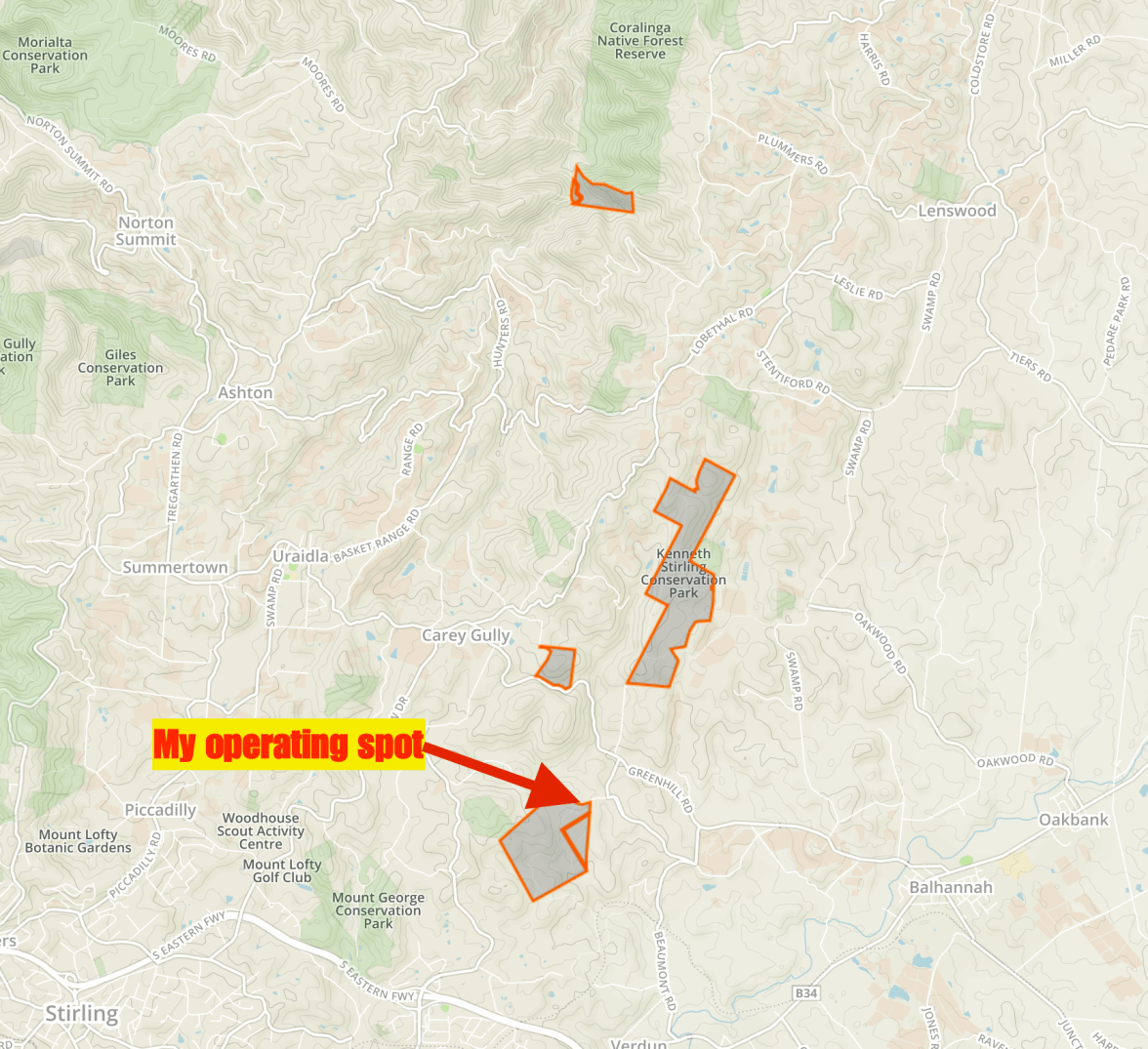 Screen Shot 2017-05-14 at 10.32.47 pm Published May 14, 2017 at 1711 × 1565 in VK5WOW at Kenneth Stirling Conservation Park, 5CP-104 and VKFF-0781 ← Previous Next →