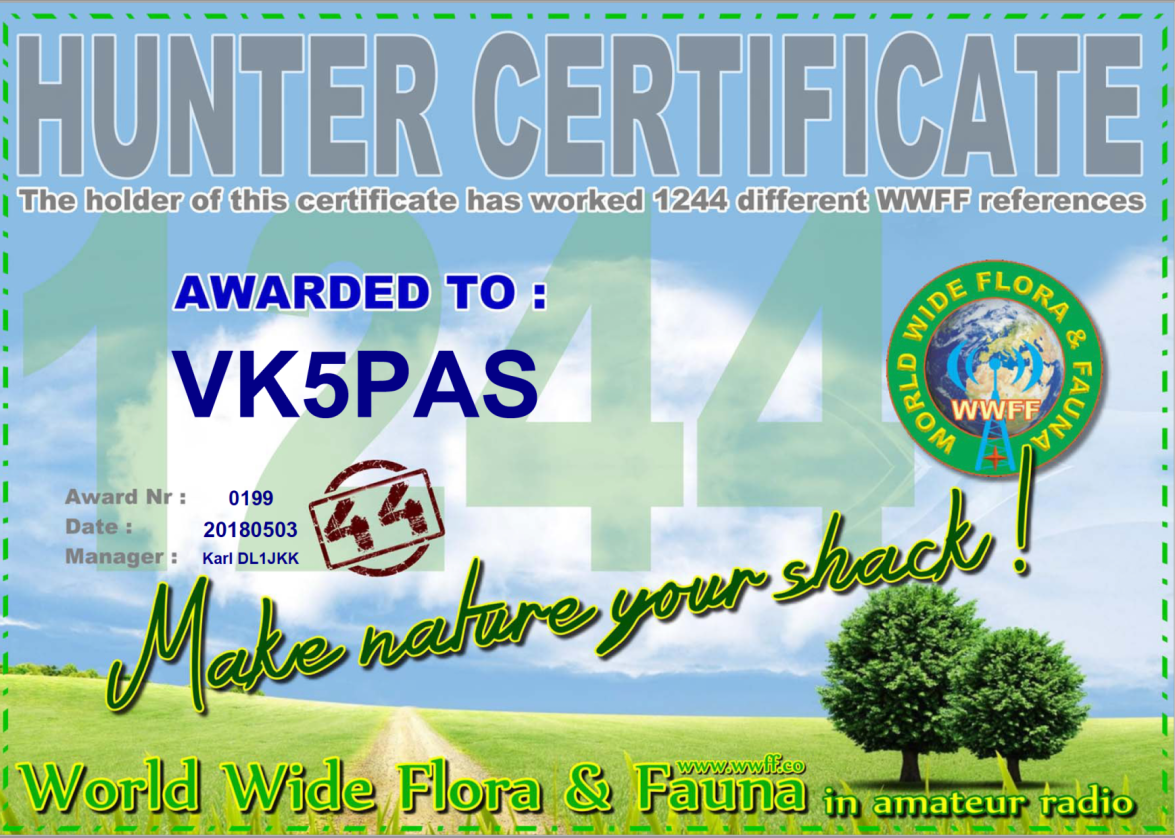 WWFF CERTIFICATES