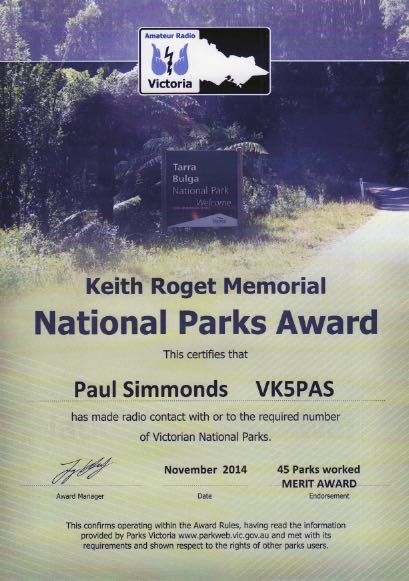 VK5 Parks Award certificates