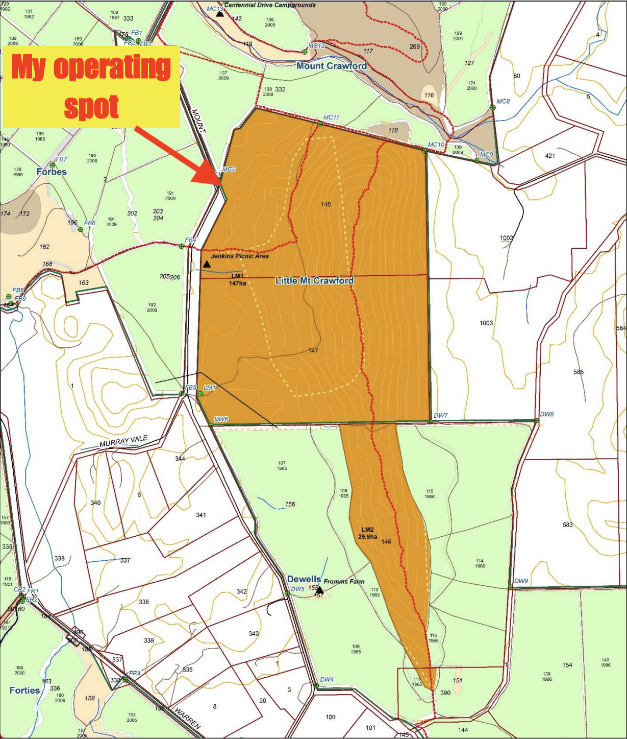 Screen Shot 2019-05-05 at 9.04.29 pm Published May 7, 2019 at 1229 × 1447 in Little Mount Crawford Native Forest Reserve VKFF-2884 ← Previous