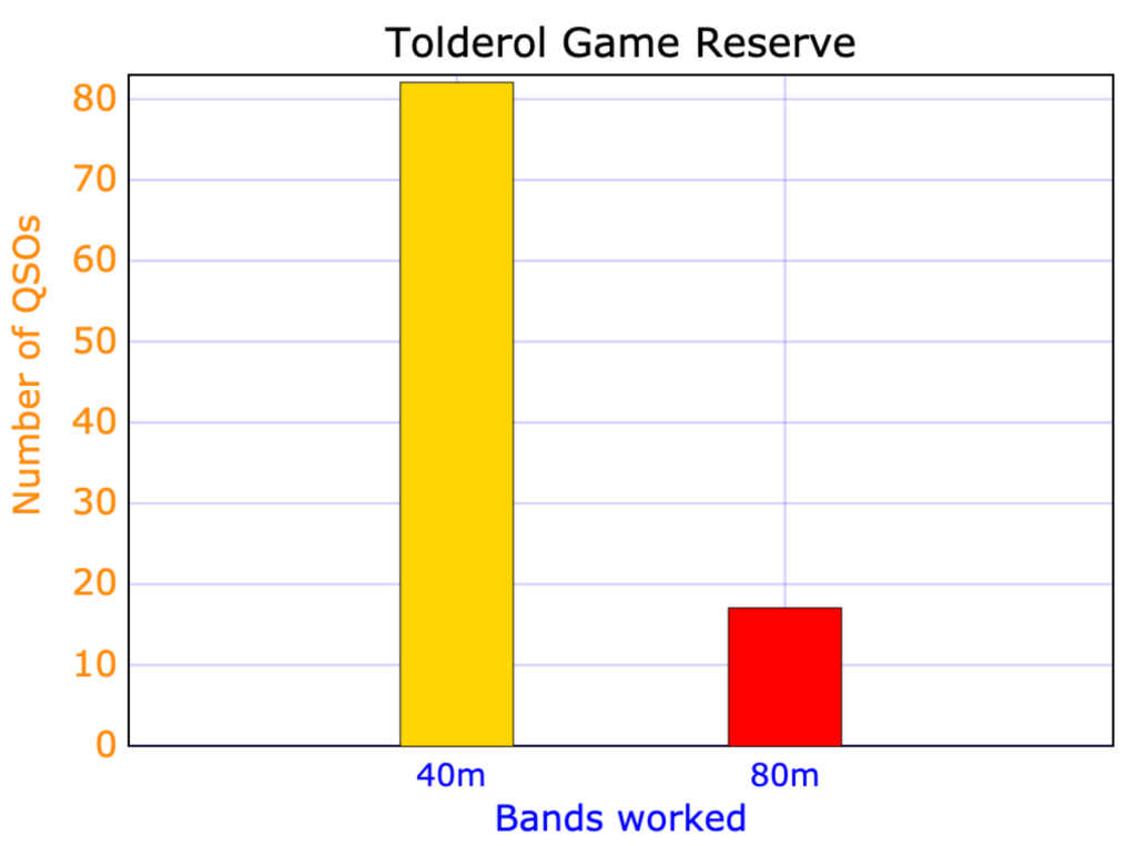 We had made a total of 82 contacts on the 40m band and a total of 17 contacts on the 80m band.