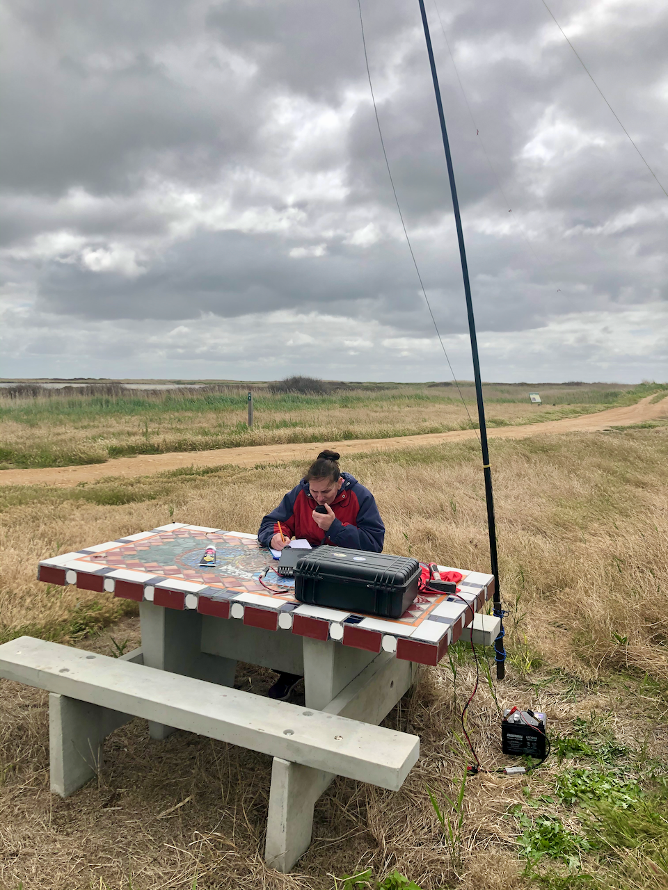 Marija and I set up in the picnic/camping area where there are three concrete tables and benches. We ran the Yaesu FT-857d and the 20/40/80m linked dipole for this activation.