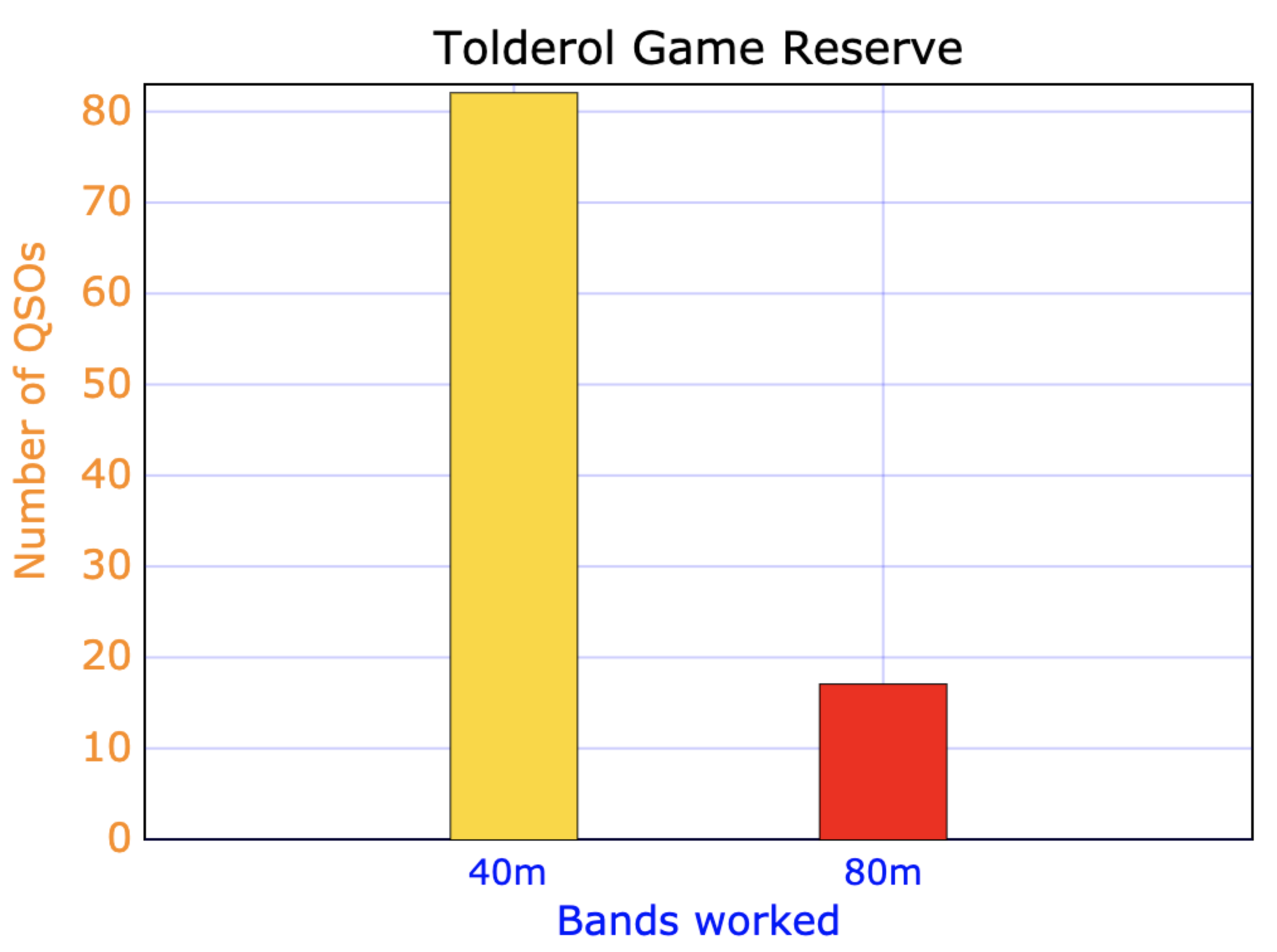 We had made a total of 82 contacts on the 40m band and a total of 17 contacts on the 80m band.