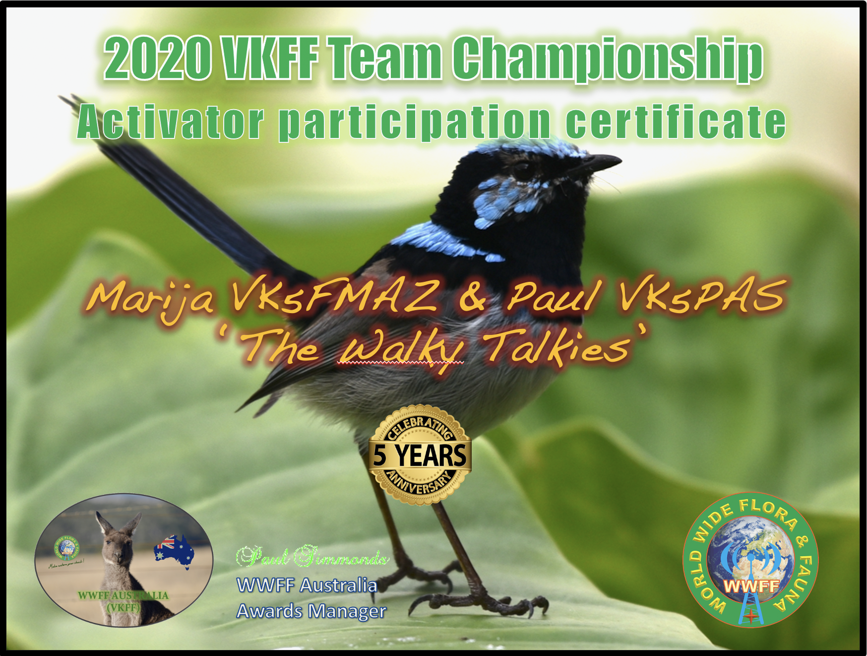 Each VKFF activator who took part in the event received a Participation certificate which features a photograph I took of a Superb Fairy Wren.