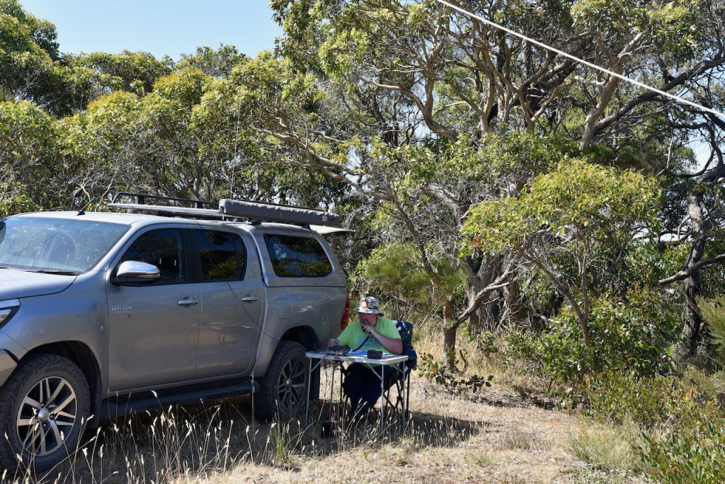 I kicked off the activation, calling CQ on 7.120. We could not get a frequency higher up the band as the Sunday morning broadcasts for the Wireless Institute of Australia were in full swing. It took about 5 minutes of CQ calls before my first taker, Rex VK3OF.