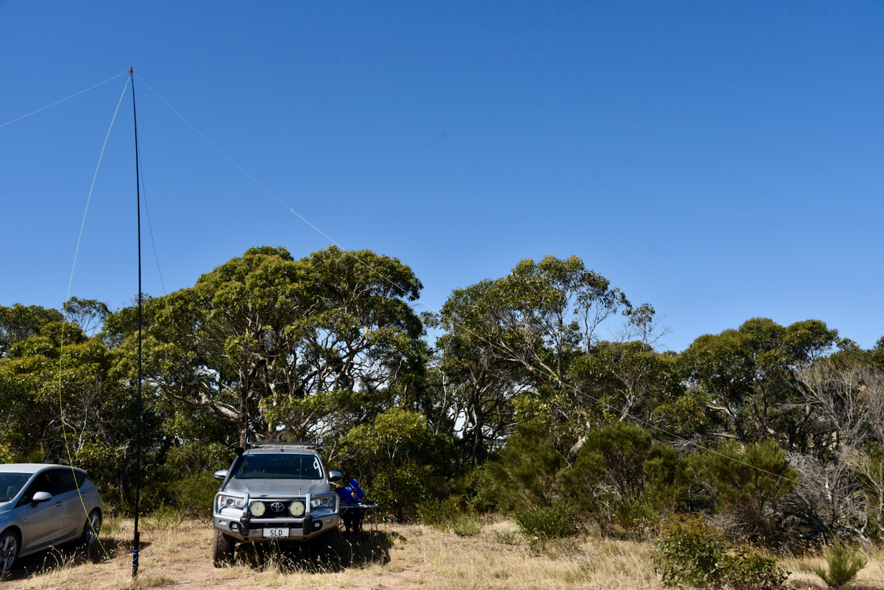 We then lowered the squid pole and took down the 15m dipole and placed up the 20/40/80m linked dipole. I then called CQ on 7.144 with Geoff VK3SQ being the first caller. Band conditions on 40m were still poor, and I logged just 12 stations on 40m from VK2, VK3, VK4, and VK5. The South Australian (VK5) stations from the Riverland, Port Augusta, the Yorke Peninsula, and the Clare Valley were very strong.