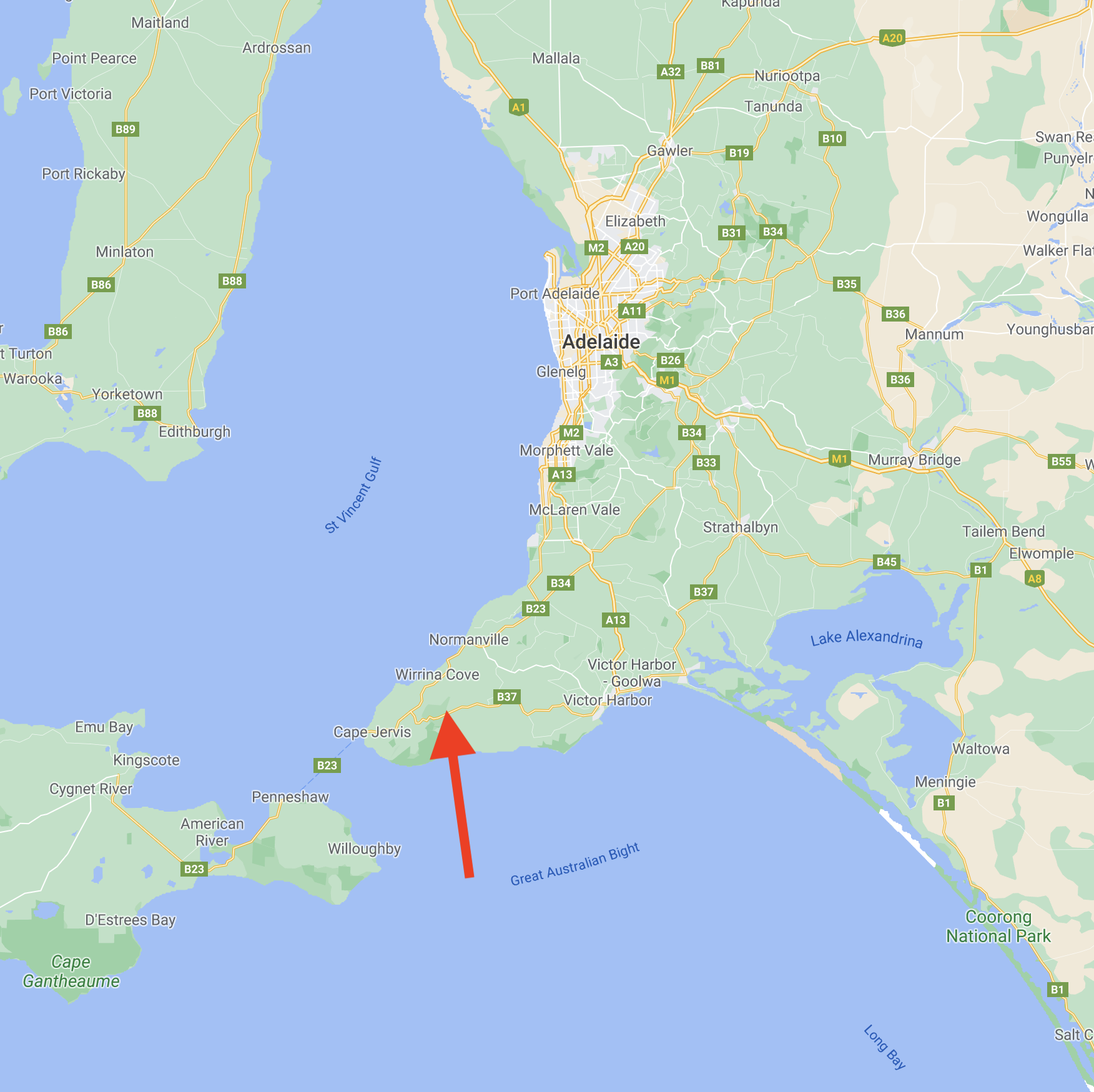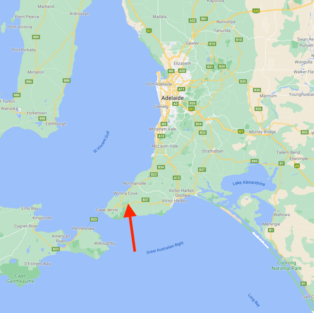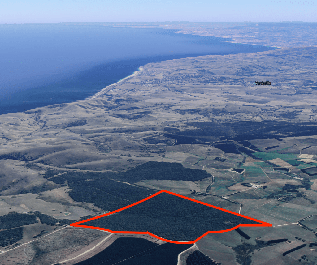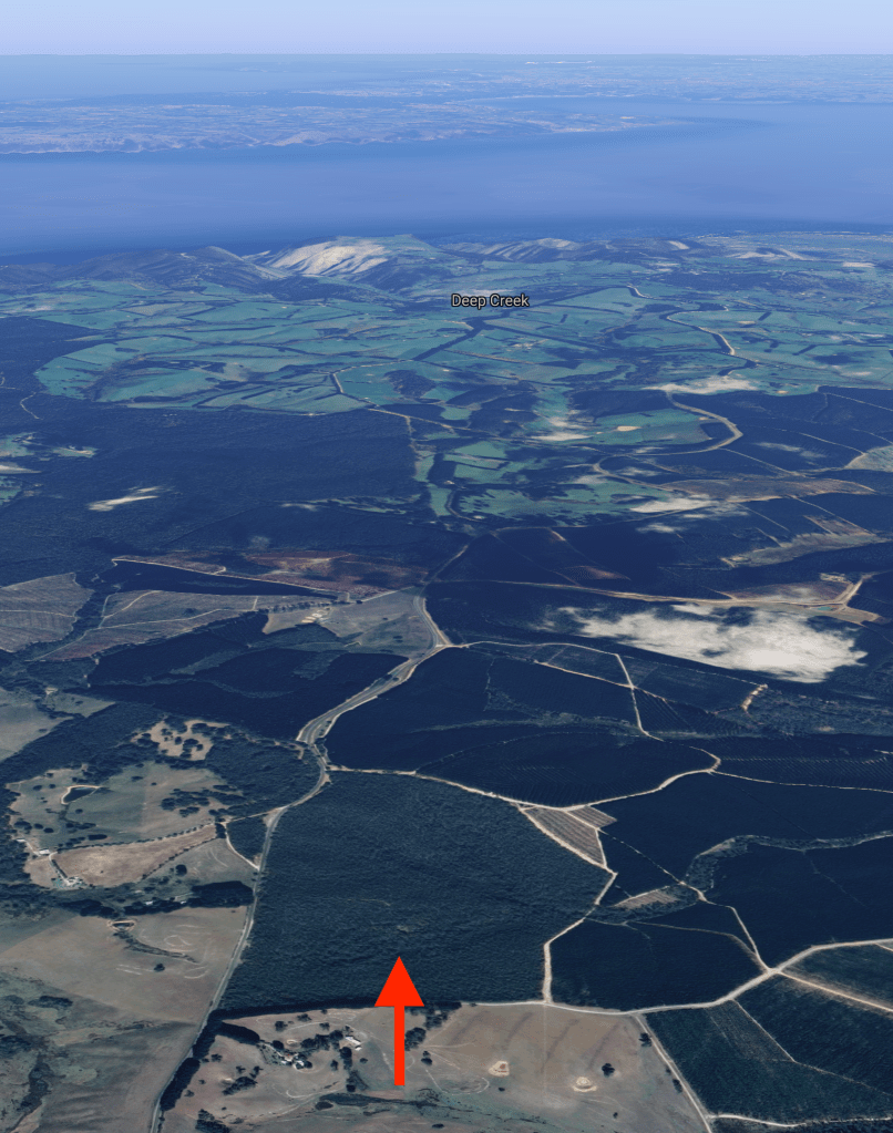 Above:- An aerial view of the Myponga Conservation Park, looking north back towards Adelaide. Image courtesy of Google maps
