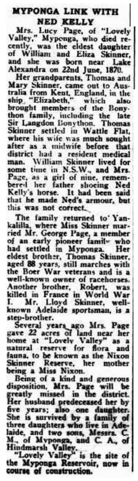 “this beautiful Myponga area showed that she (Lucy Page) had a far sighted and truly conservationist attitude’.