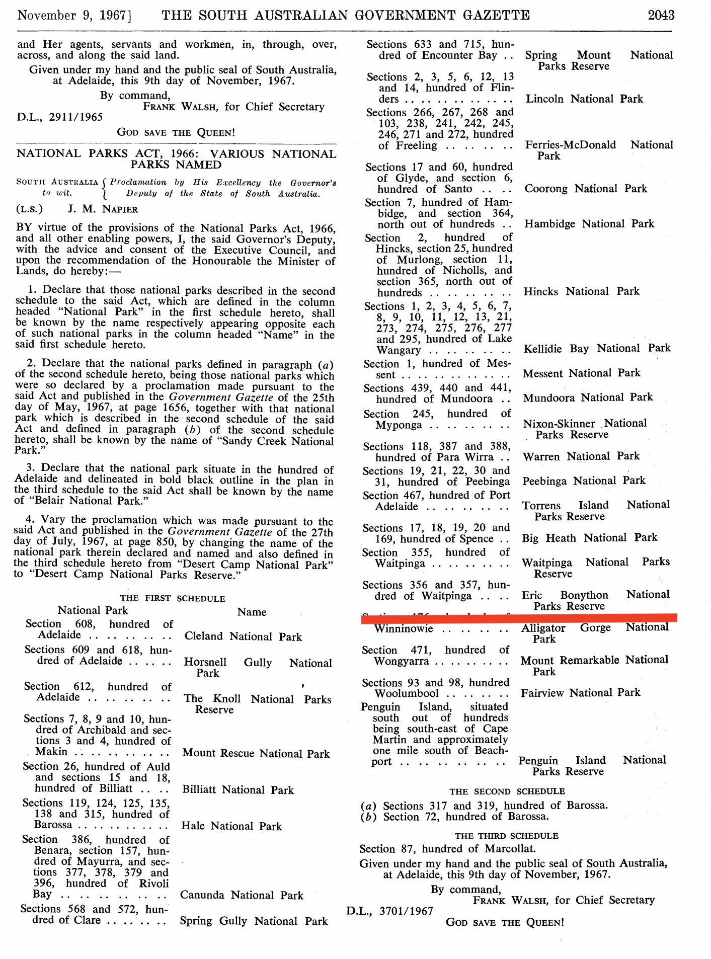Above:- from The South Australian Government Gazette, 9th November 1967.