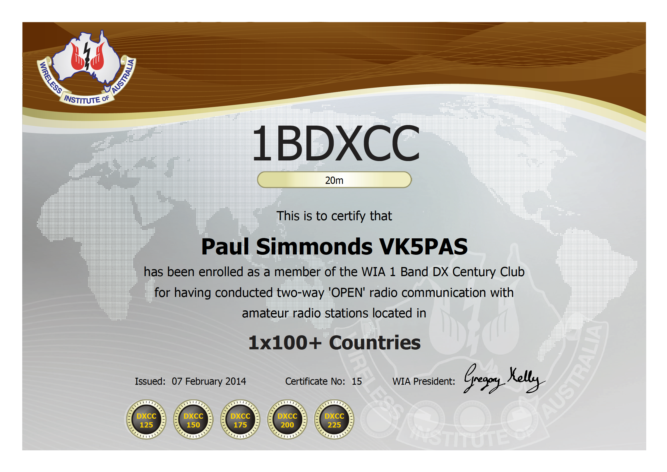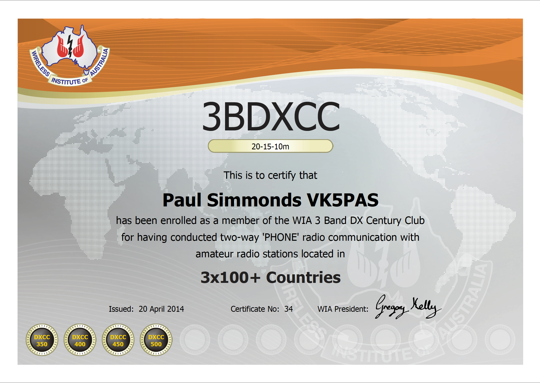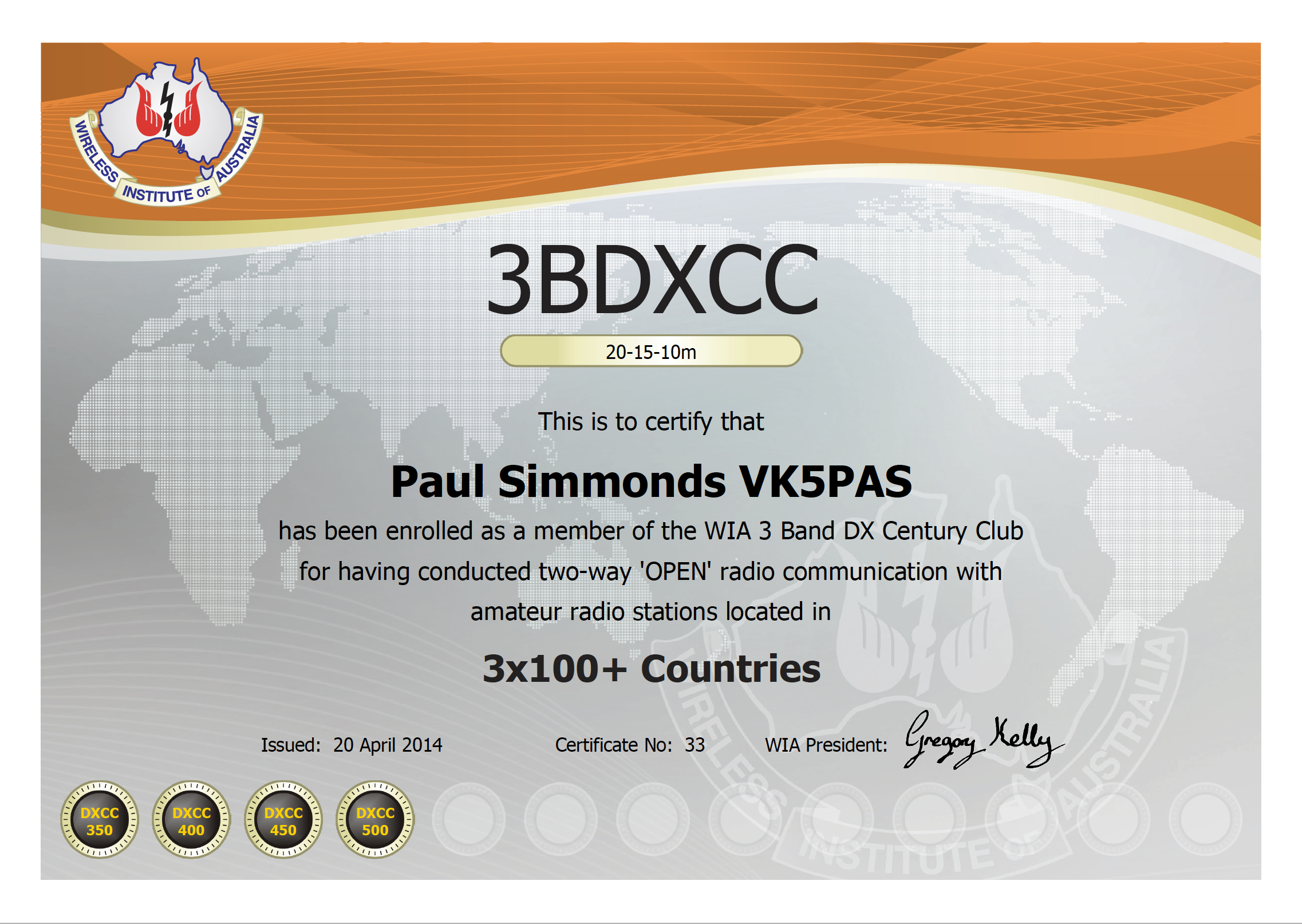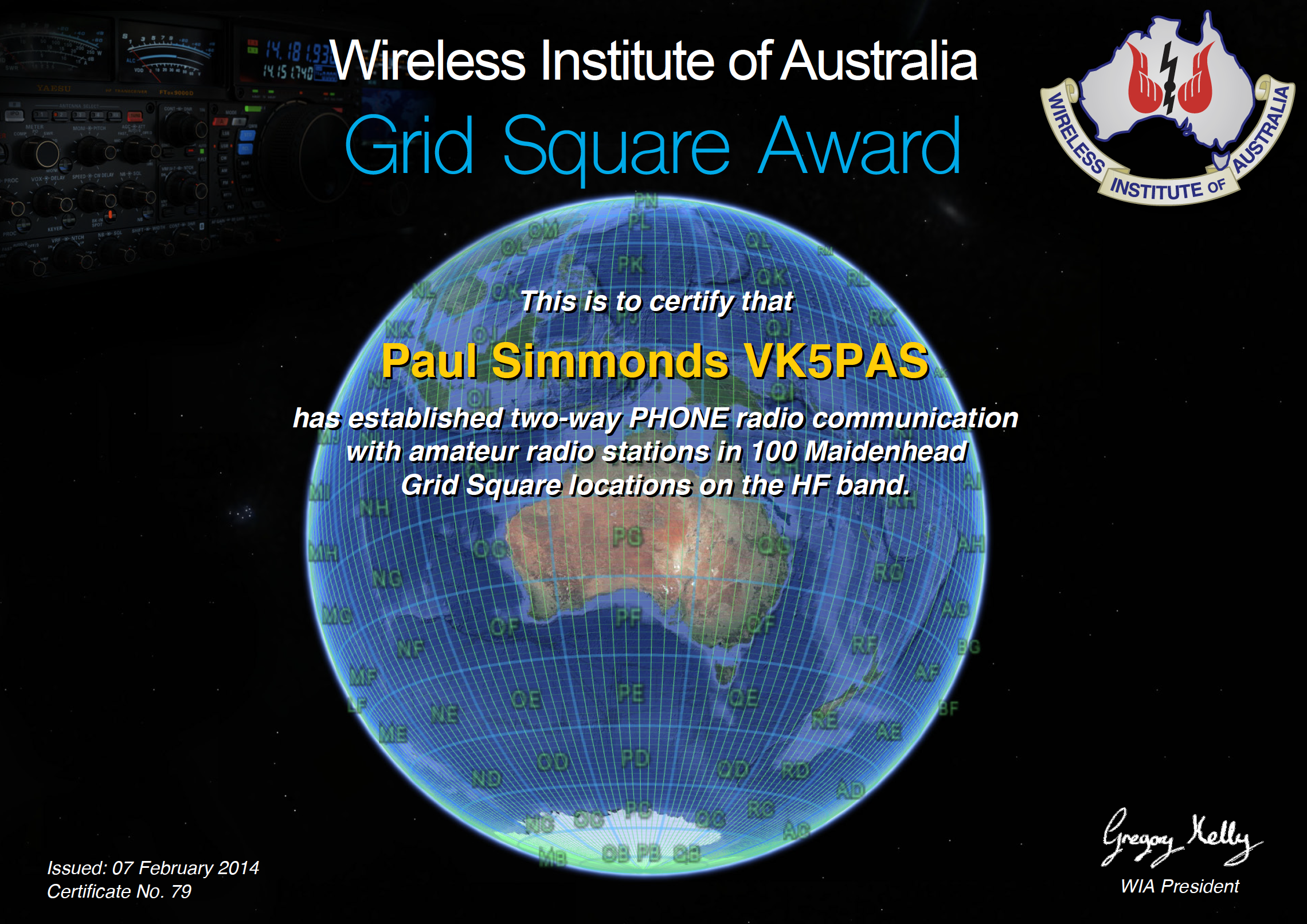 Being very slack, I had not uploaded my logs to the WIA Award system in some time. As a result of my recent upload, I received a few award certificates. Thanks to the WIA Awards Committee.
