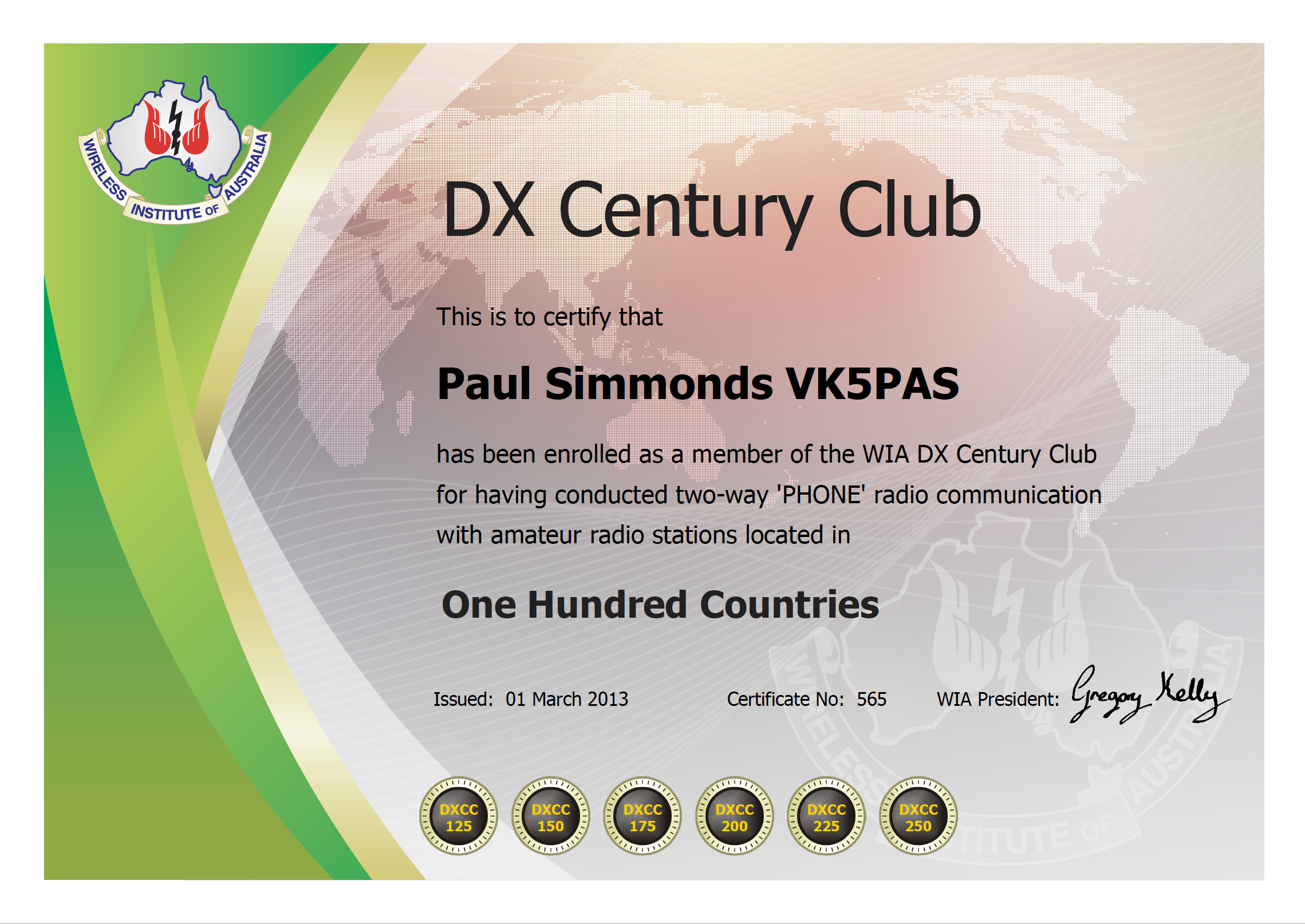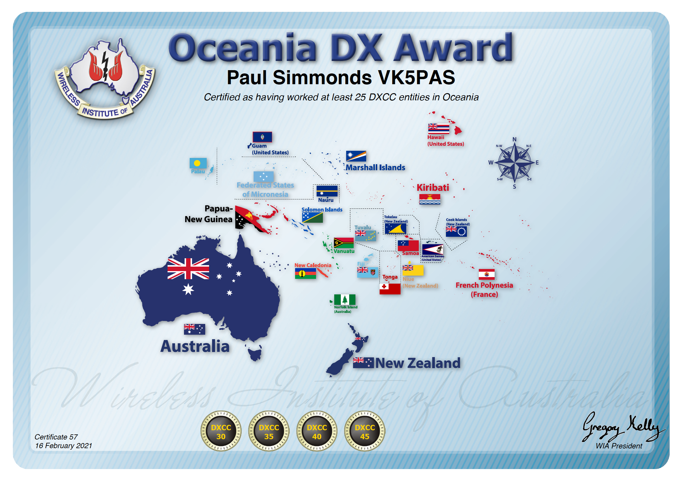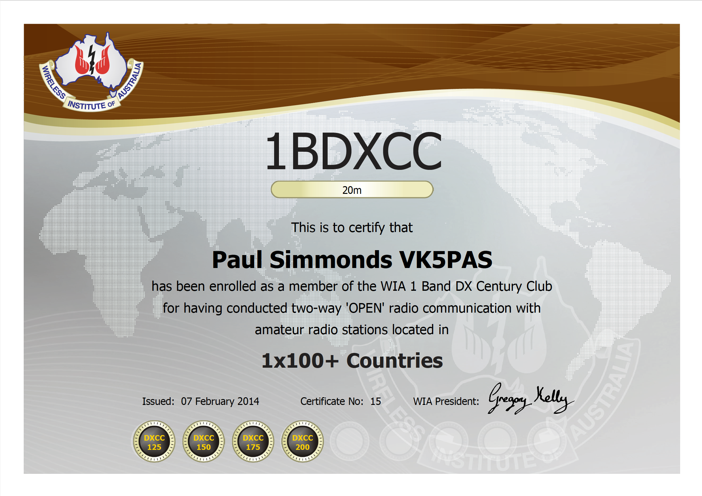Being very slack, I had not uploaded my logs to the WIA Award system in some time. As a result of my recent upload, I received a few award certificates. Thanks to the WIA Awards Committee.