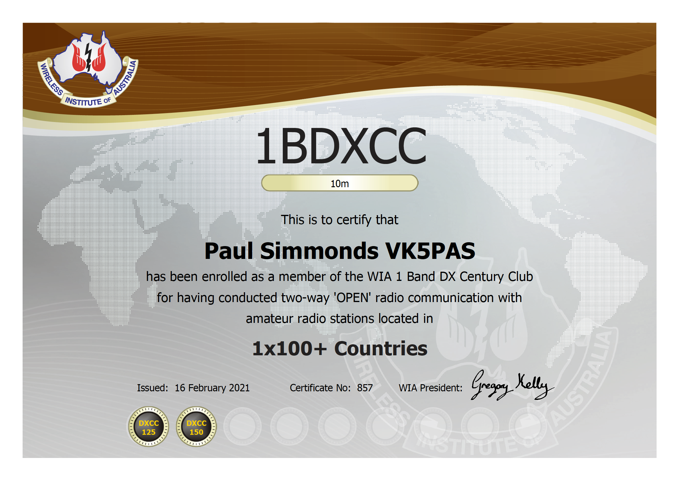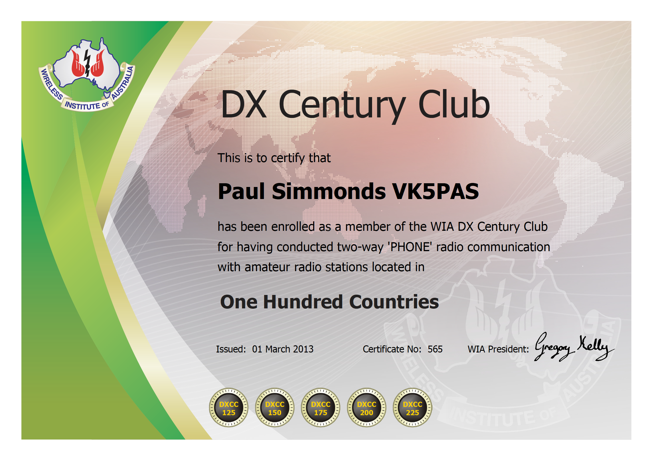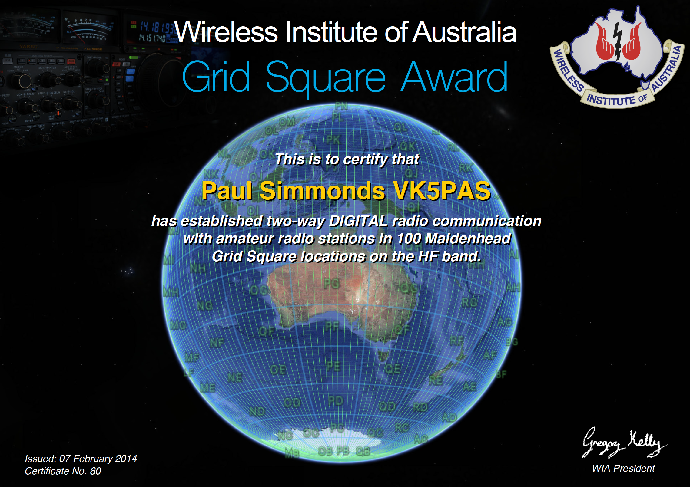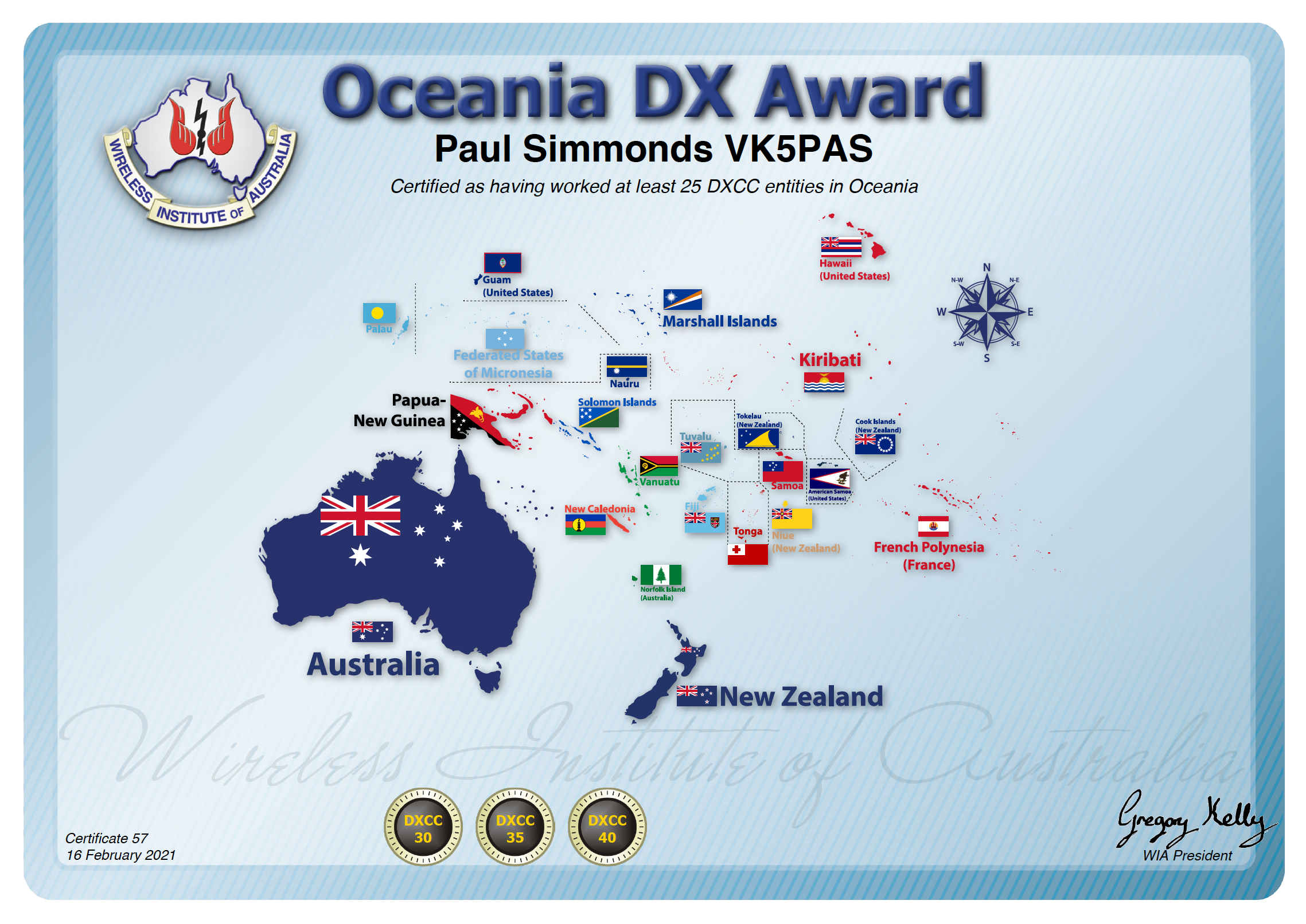 Being very slack, I had not uploaded my logs to the WIA Award system in some time. As a result of my recent upload, I received a few award certificates. Thanks to the WIA Awards Committee.