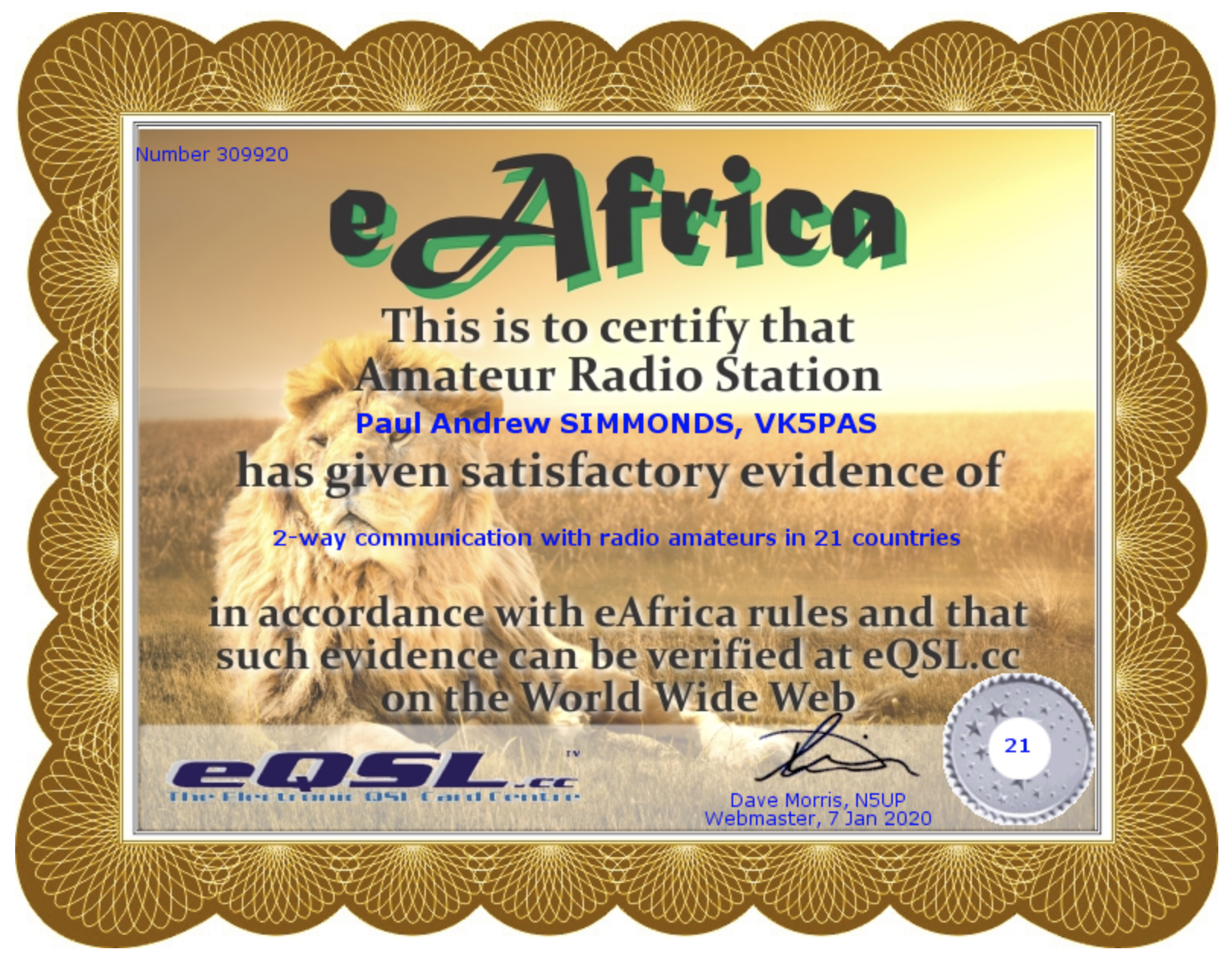 Last Thursday (18th February 2021) I attended the Annual General Meeting of the Adelaide Hills Amateur Radio Society (AHARS). At the end of the AGM proceedings I delivered a presentation on the AHARS website, of which I the Webmaster. I was also very pleased to receive a Certificate of Appreciation from the AHARS Committee for my service to AHARS.
