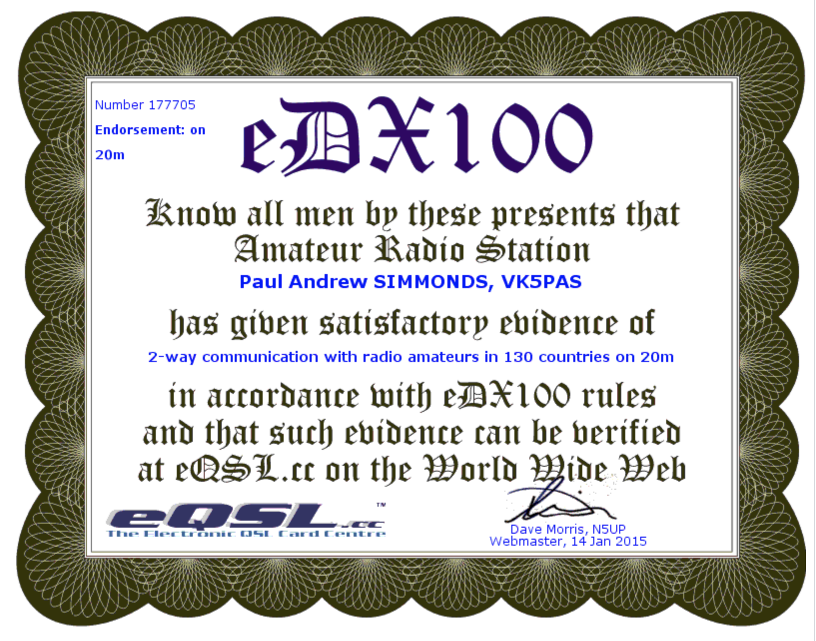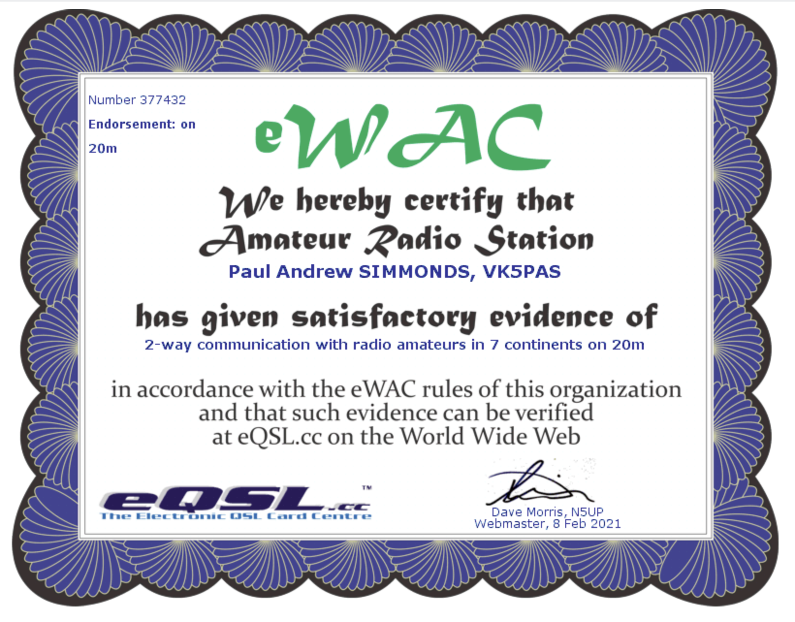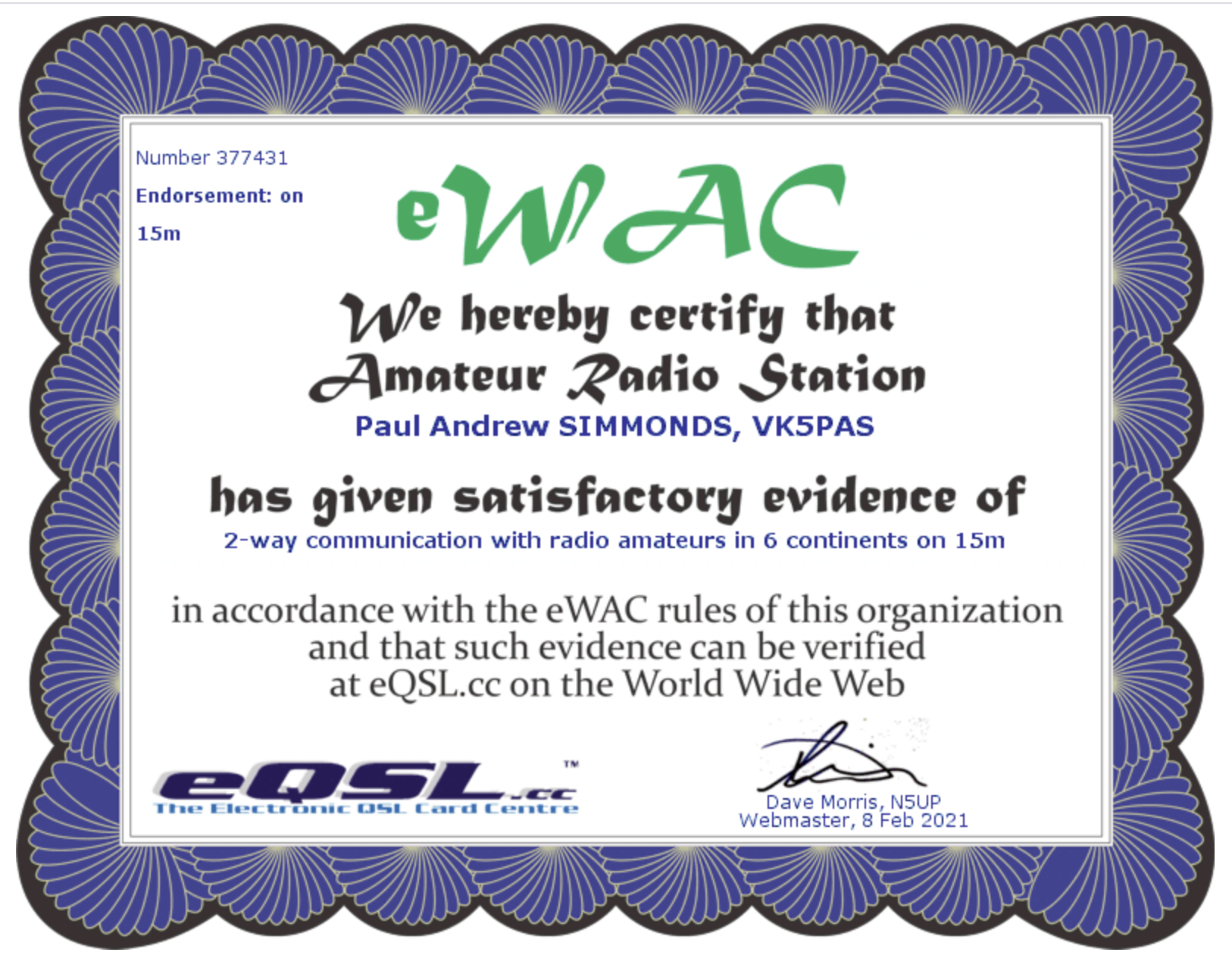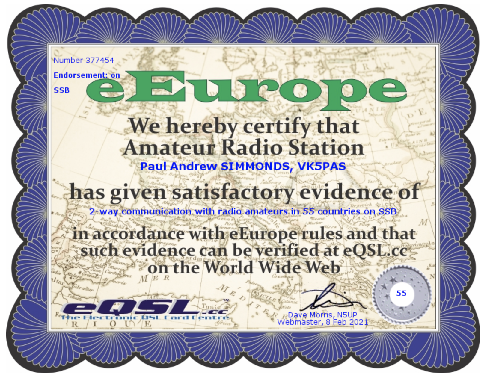In early February I checked out eQSL after a long absence and to my great pleasure, I found that I had qualified for a stack of awards.