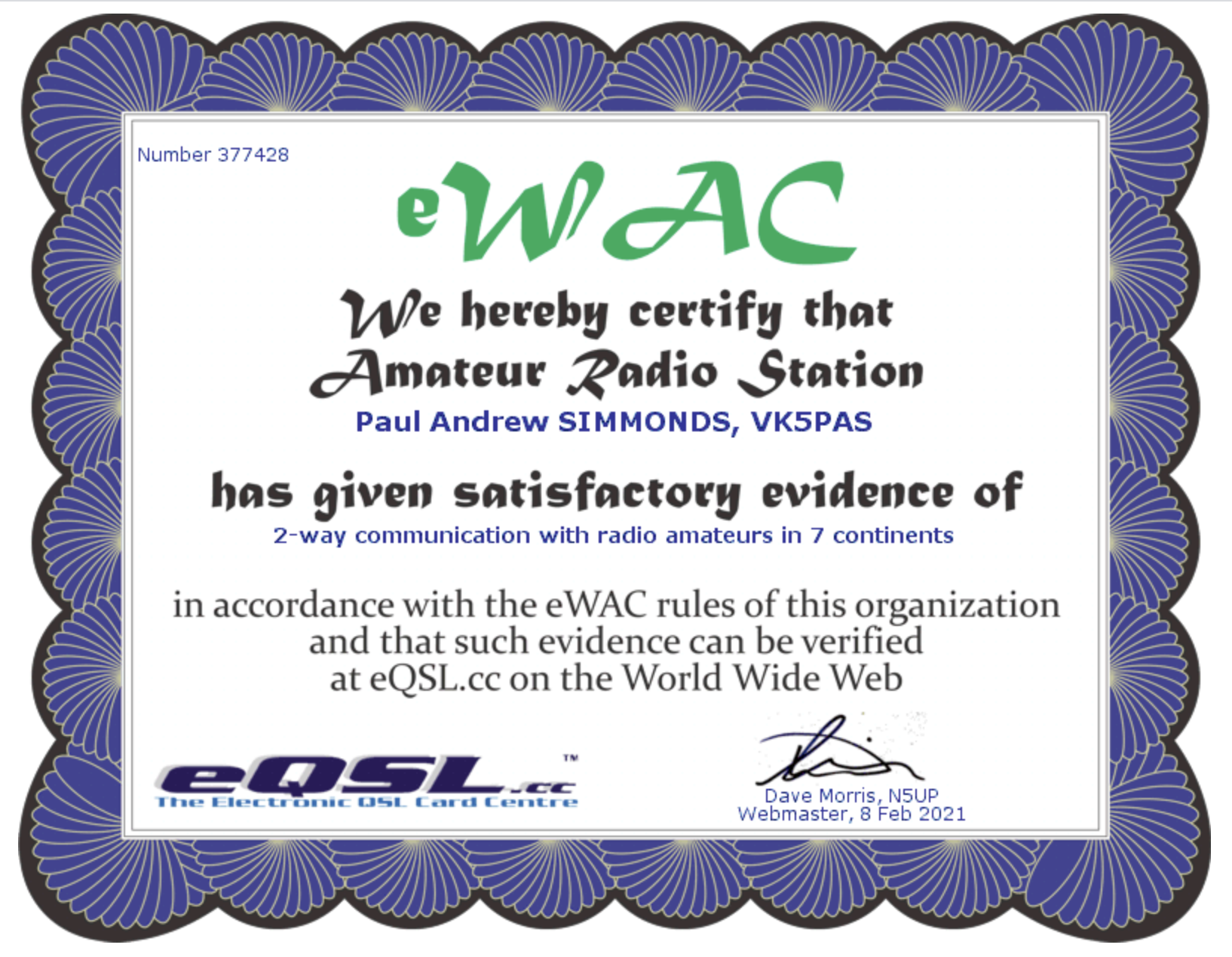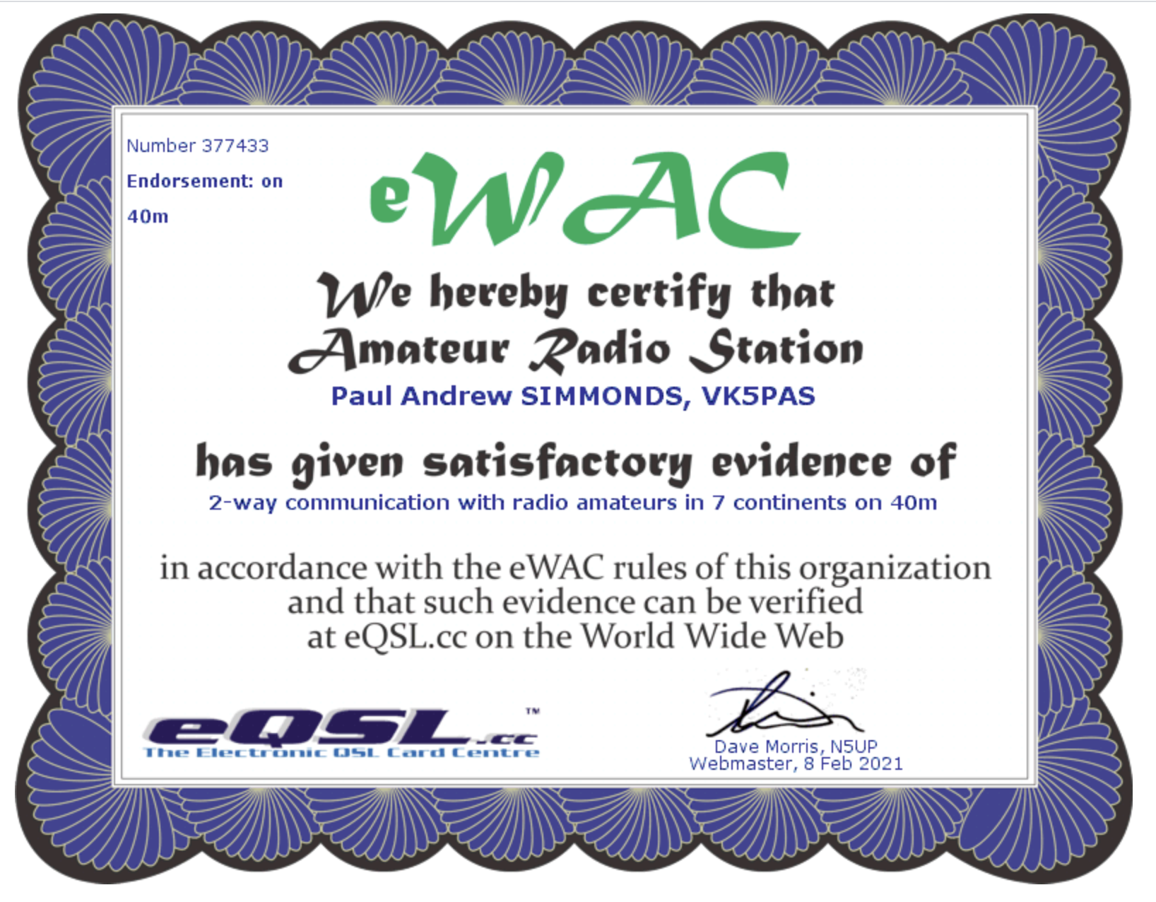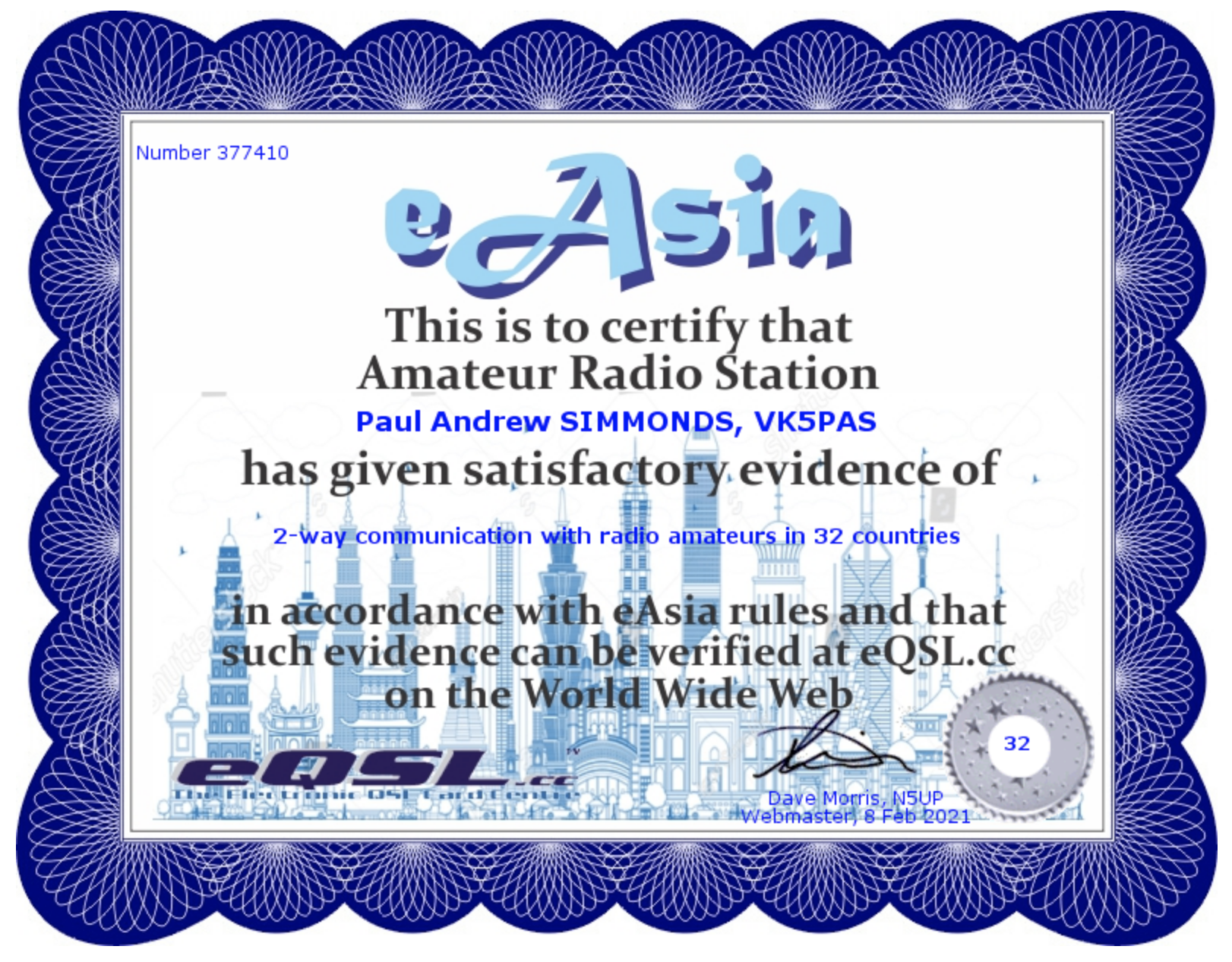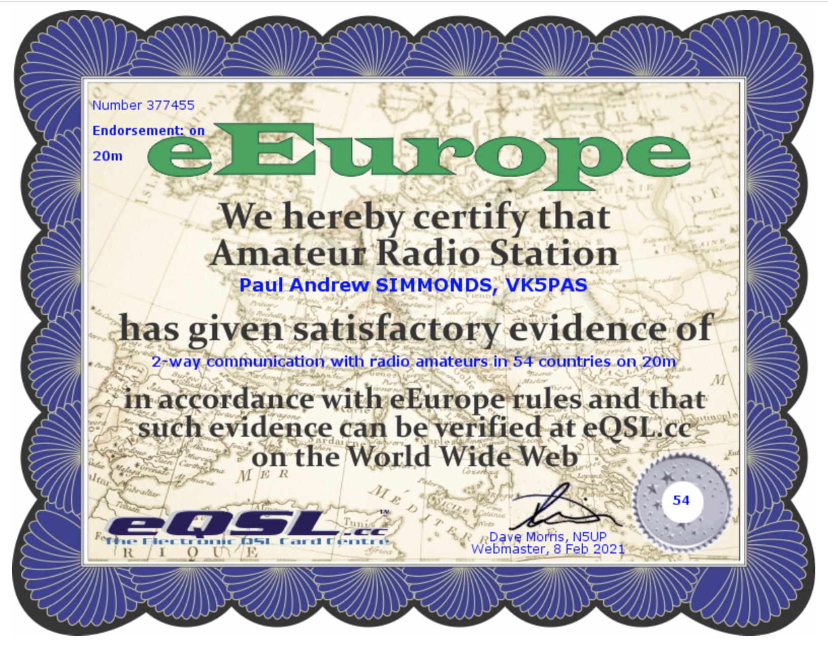In early February I checked out eQSL after a long absence and to my great pleasure, I found that I had qualified for a stack of awards.