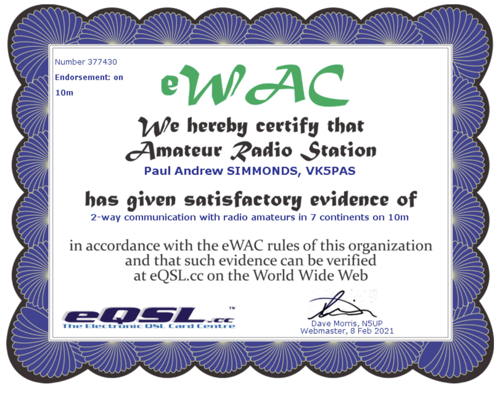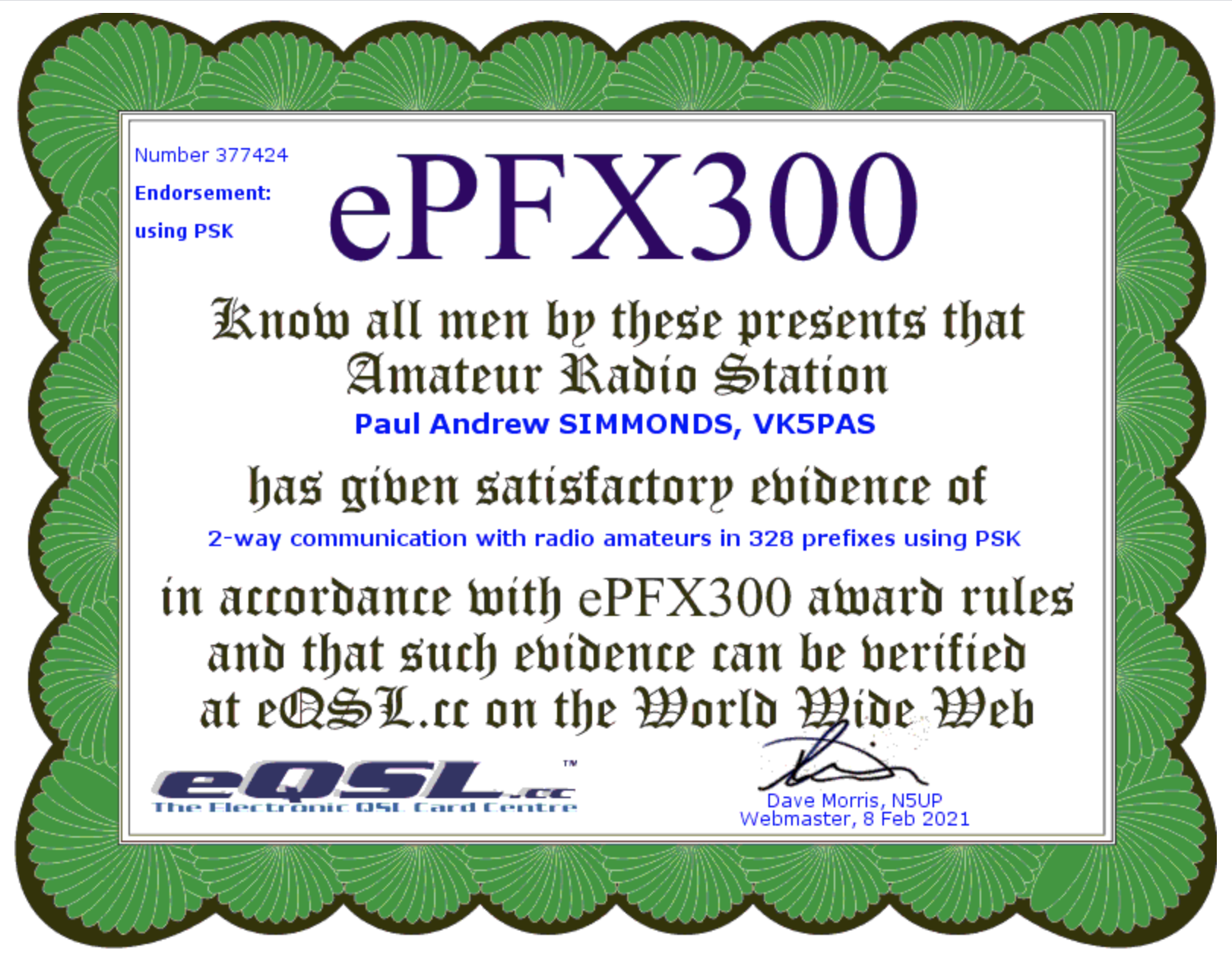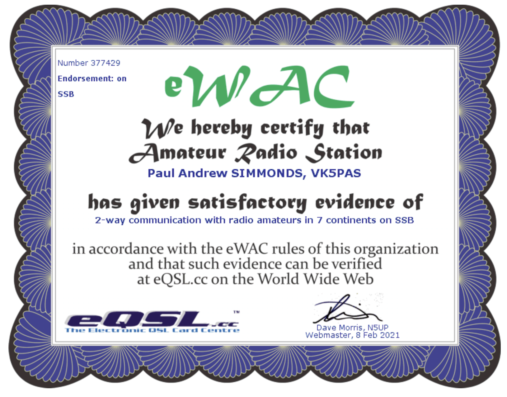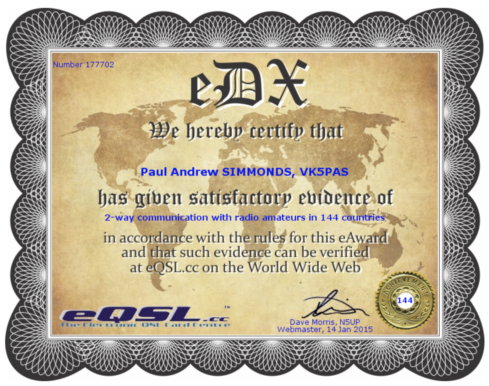 In early February I checked out eQSL after a long absence and to my great pleasure, I found that I had qualified for a stack of awards.