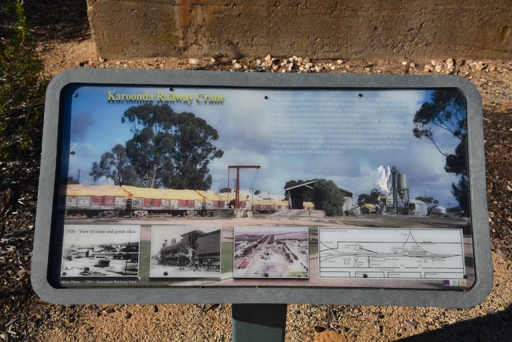 At Karoonda we visited the small RSL park in the main street (Railway Terrace/the Karoonda Highway). There is an information board here about the history of the railway in Karoonda. We also had a look at the Karoonda Centennary Walk which celebrates Karoonda’s pioneers.