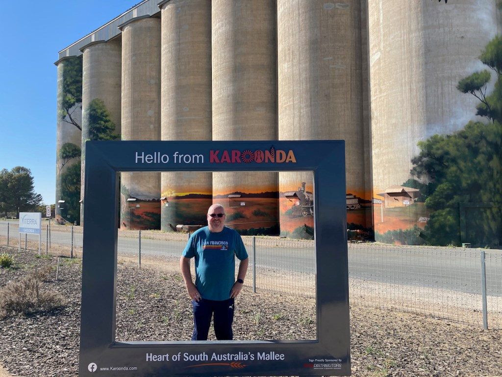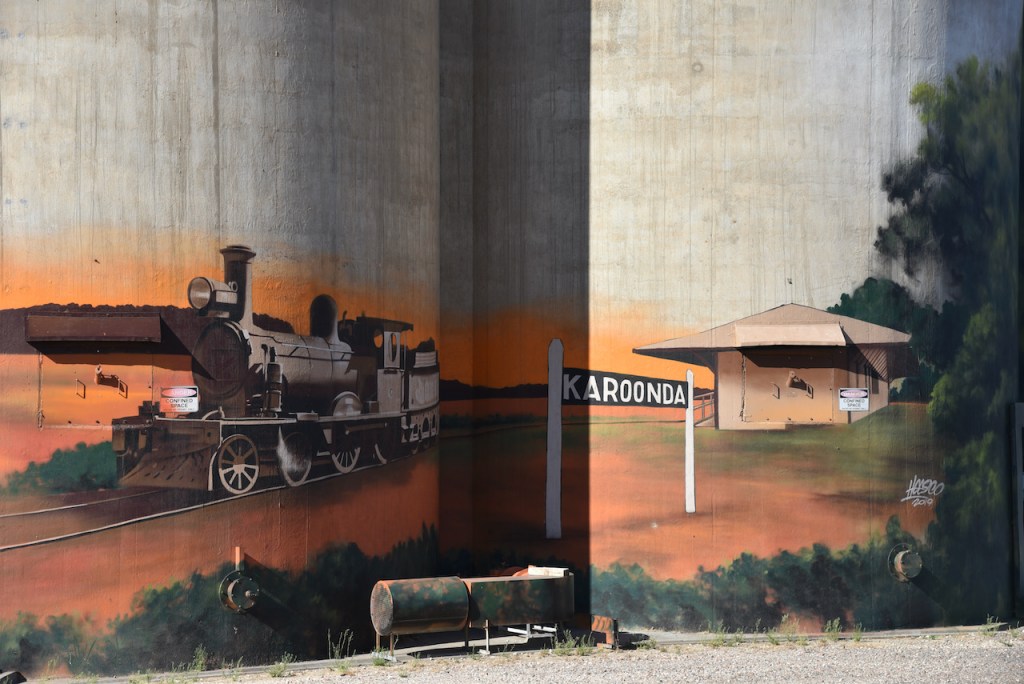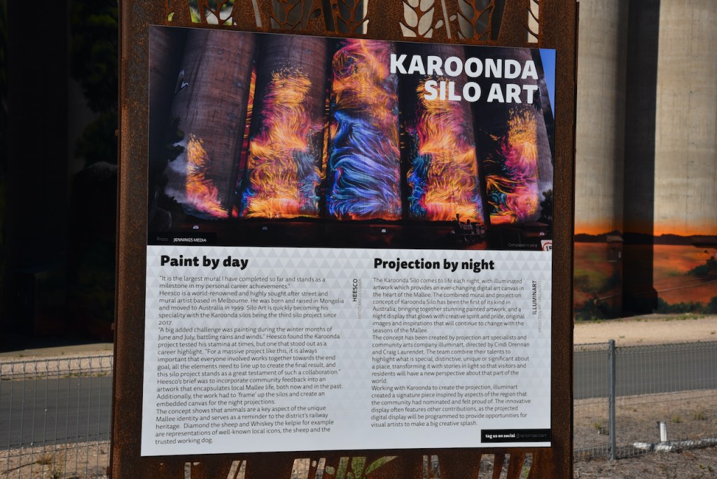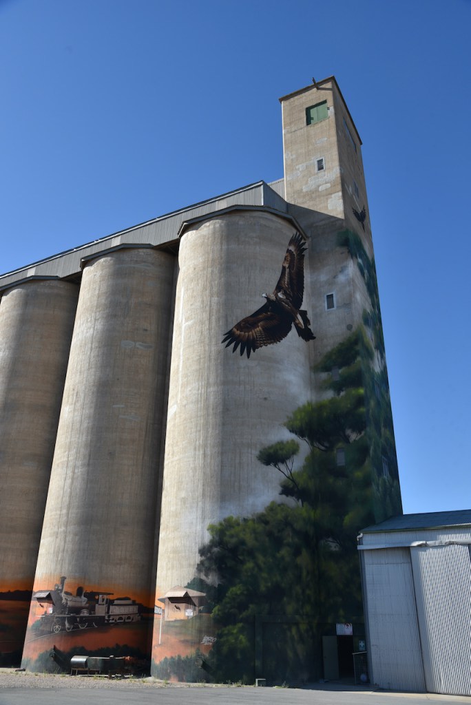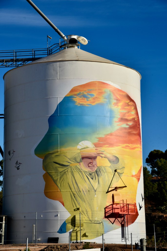 We then visited the Karoonda silos which have been transformed into what has become very popular in Australia, Silo Art. The Karoonda silo art is the creation of renowned Australian artist Heesco. He is also responsible for silo art at Weethalle and Grenfell prior to Karoonda. The Karoonda Silo Art project was completed on the 26th July 2019. It Heesco about 38 days to paint the South Australian Viterra Silo.