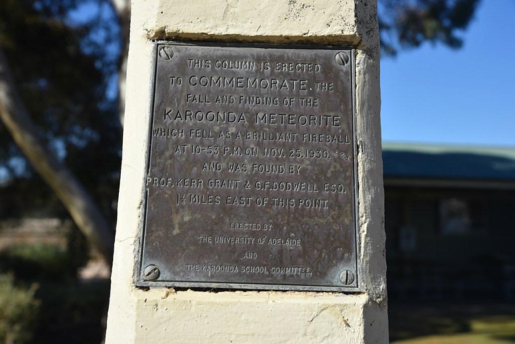 “On November 25th 1930 South Australians were started by the appearance of a brilliant “Fire Ball”. As a result of astronomical observations and information received from various localities it seemed probably that a Meteorite had landed somewhere in the neighbourhood of Karoonda.