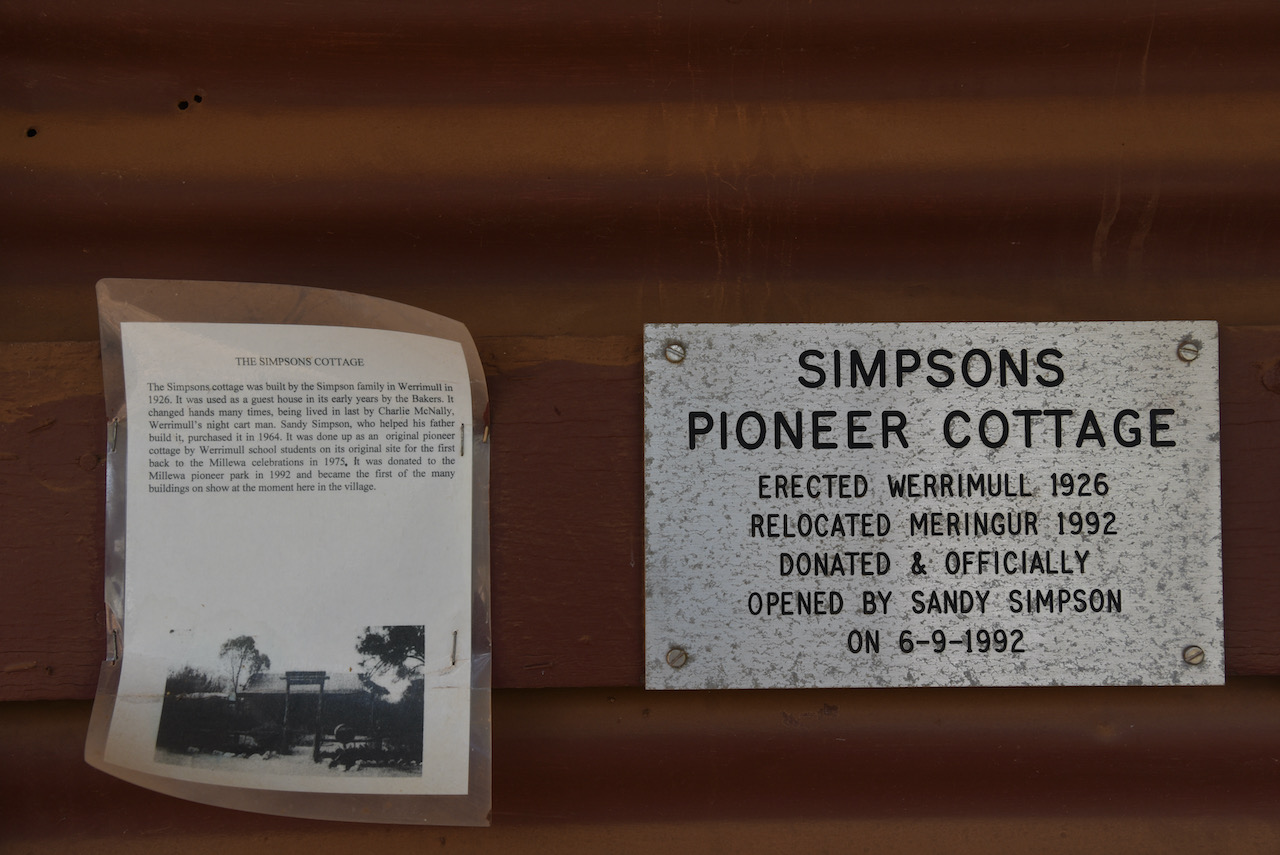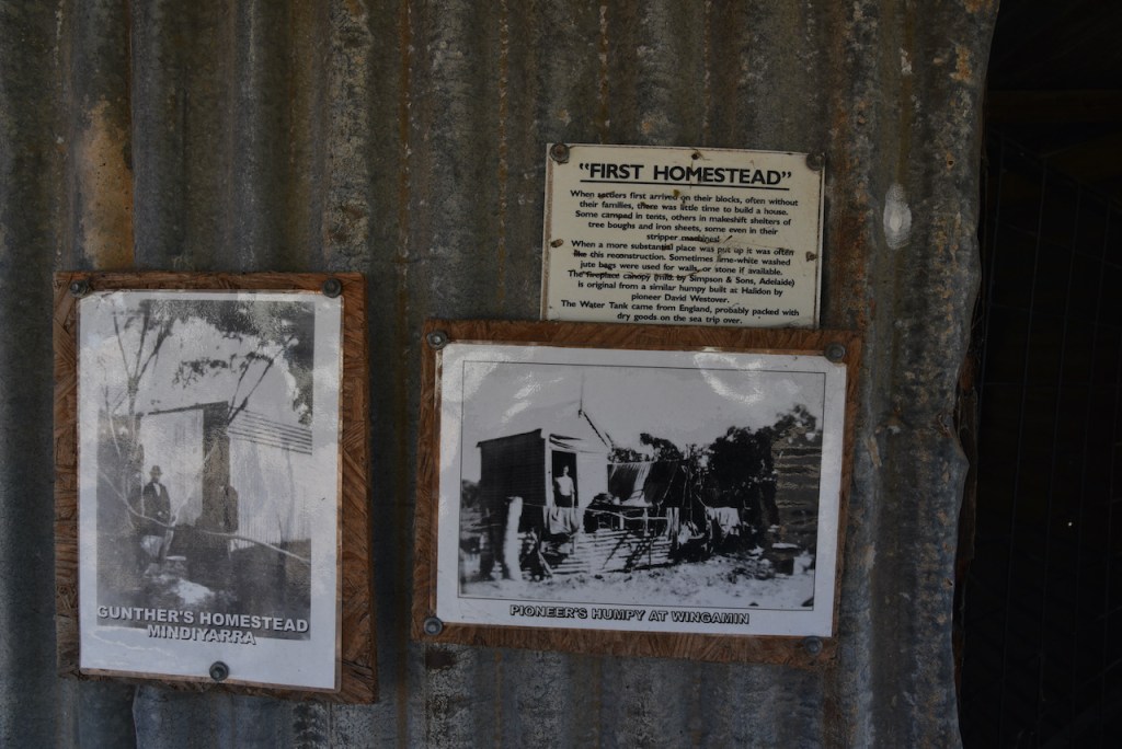 Also located at Pioneer park is an old pioneer farmhouse which was built in 1913 by the Hood family at Sandalwood. It was rebuilt at Pioneer Park and contains many examples of items used during the pioneer days of the Mallee.