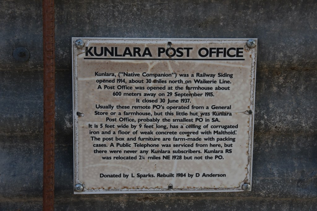 You can also view the Kunlara Post and Telephone Office which first opened in 1915 and closed in 1953. It has the title of one of the smallest Post and Telephone Office buildings in South Australia.
