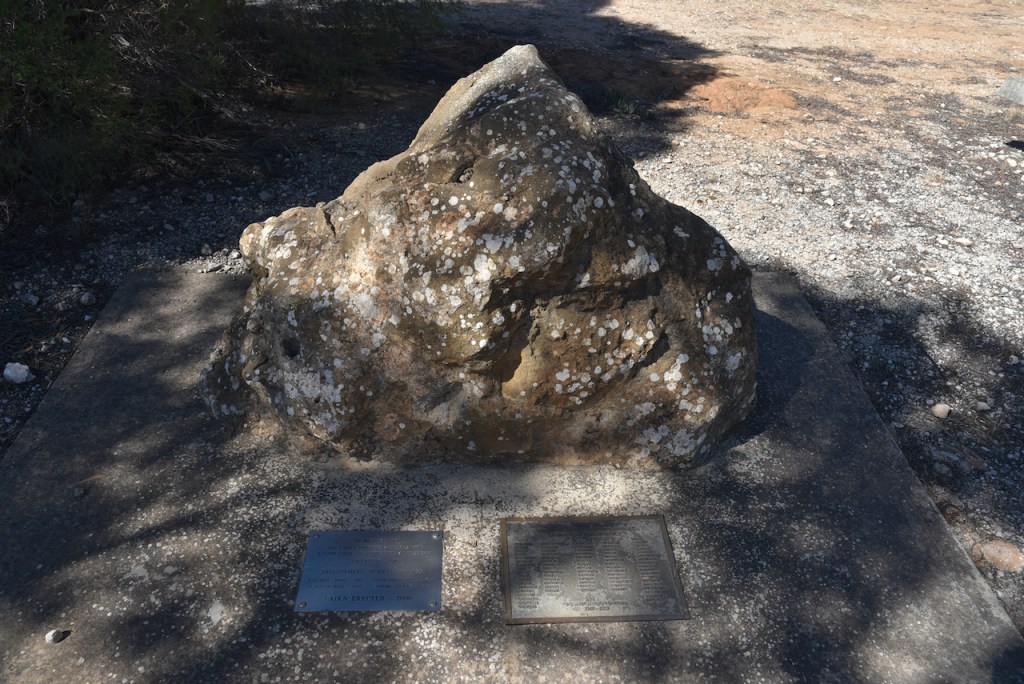 We then visited the Karoonda meteorite monument in RSL Park. At 10.53 p.m. on the 25th day of November 1930, a meteorite fell to earth about 3.6 km from the town. The meteorite was observed falling from the sky from the Eyre Peninsula to mid Victoria. Witnesses described t was ‘turning night into day’.