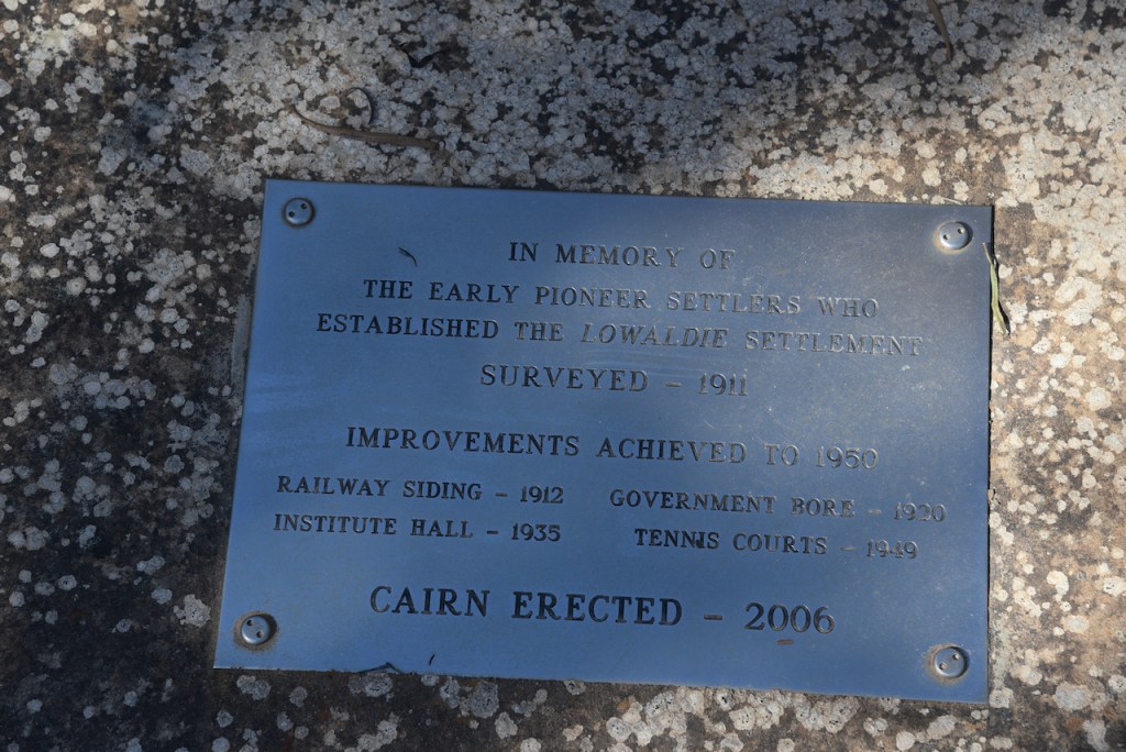 We left Karoonda and continued east on the Karoonda Highway. Our next stop was the little town of Lowaldie which was proclaimed in 1914. This town once had a railway station, a school, post office, and institute. Today, these have all closed and the former institute building is used as a private residence. There is a small monument indicating the site of the former school. Lowaldie is an aboriginal word meaning ‘summer’.