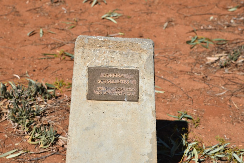 We then stopped briefly at Borrika, a little further up the road to view the small memorial for the former Borrika school sites. Borrika school was a one teacher school for all the time it was open – 26 years. Nine teachers taught at Borrika all boarding with local residents.