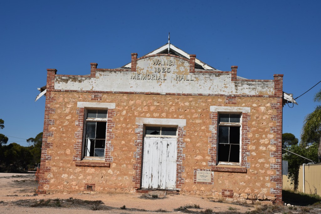 Our next stop was the little town of Wanbi. It is another town which has fallen victim to the closure of the railway. Wanbi is believed to come from the aboriginal word wandi meaning ‘wild dog’. The town of Wanbi was proclaimed on the 9th July 1914. Sadly the old Wanbi Memorial Hall is in a state of disrepair and the old Wanbi Hotel is no longer in use.