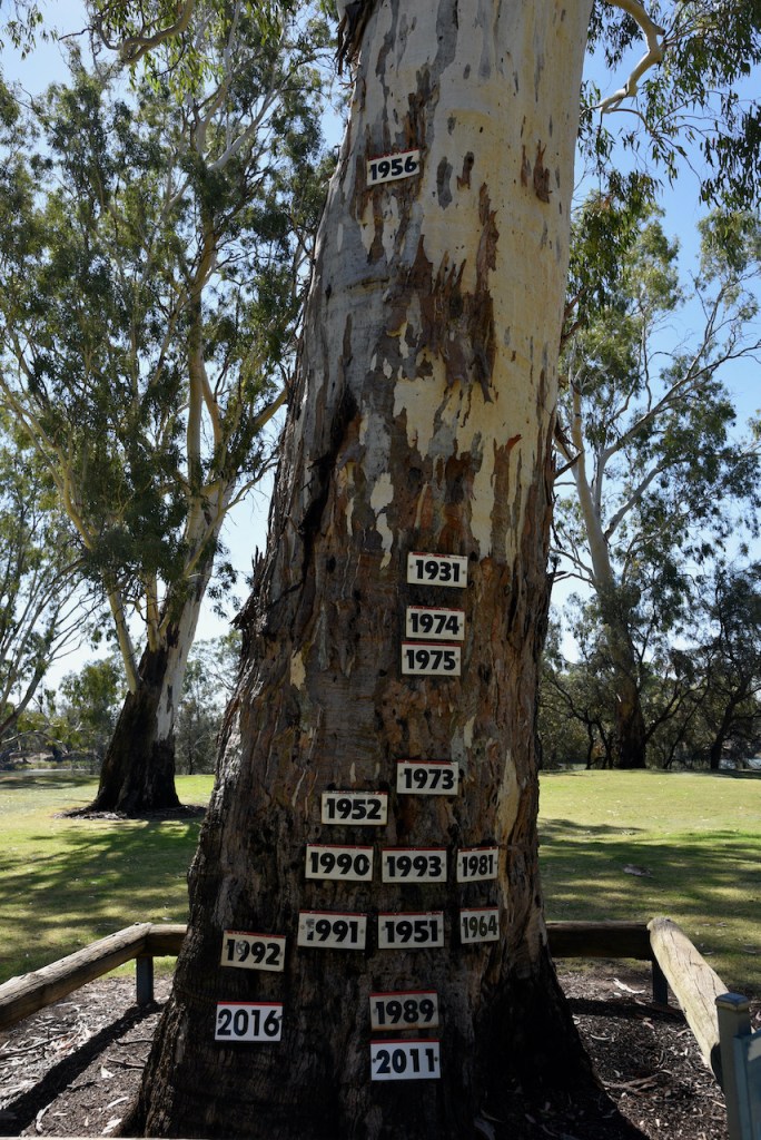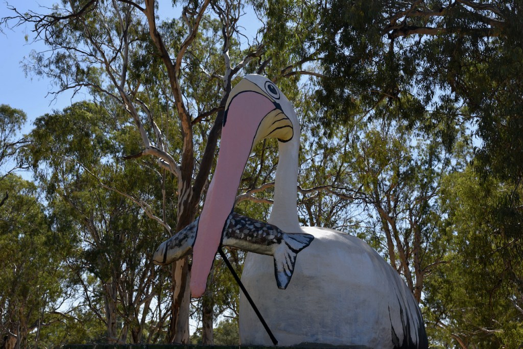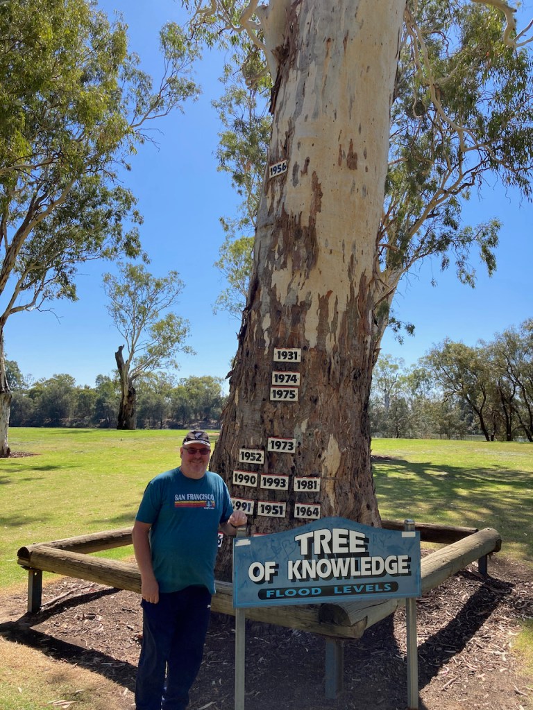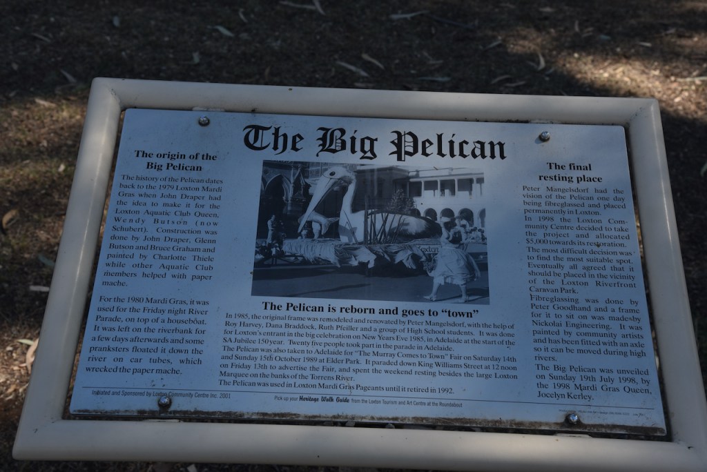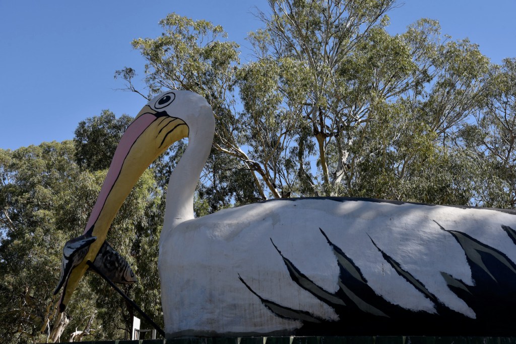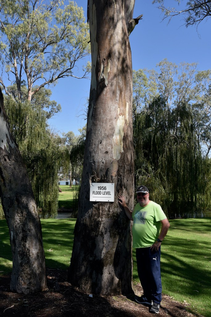 We then visited the Loxton Big Pelican. The history of the Pelican dates back to the 1979 Loxton Mardi Gras when John Draper had the idea to make it for the Loxton Aquatic Club Queen. In close proximity is the Tree of Knowledge which has the high river marks from the various Murray River floods. We enjoyed lunch in the park alongside of the Murray River.