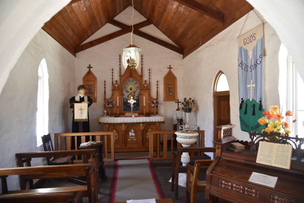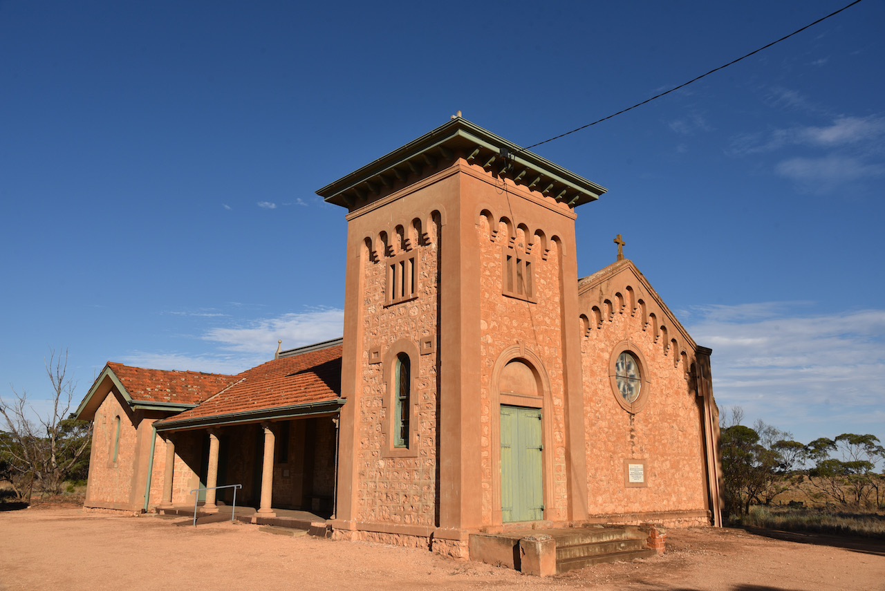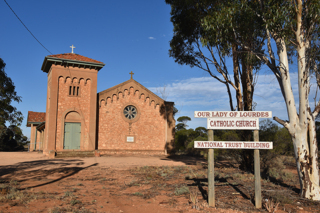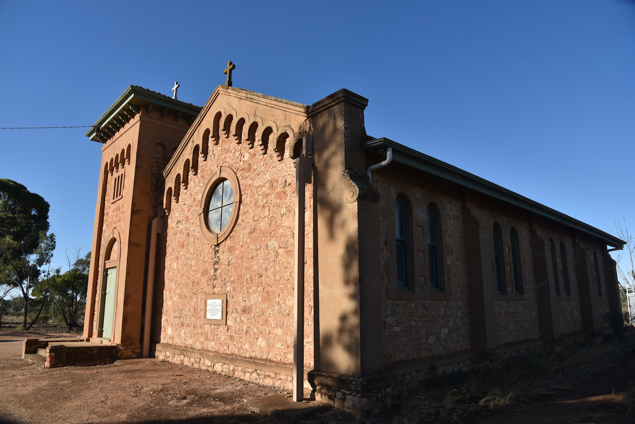 We stopped to have a look a the old Lady of Lourdes Catholic Church which was opened in 1934. It is built of local limestone to a design that copies the Romanesque Churches in Italy. The church is registered as a Heritage building by the National Trust.