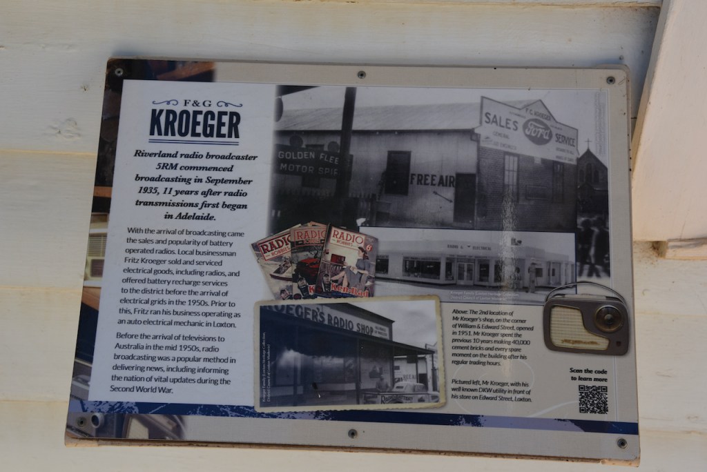 Included at the Pioneer Village is the old F & G Kroeger radio shop. Riverland radio broadcaster 5RM commenced broadcasting in September 1935. This was 11 years after radio transmissions first commenced in Adelaide.