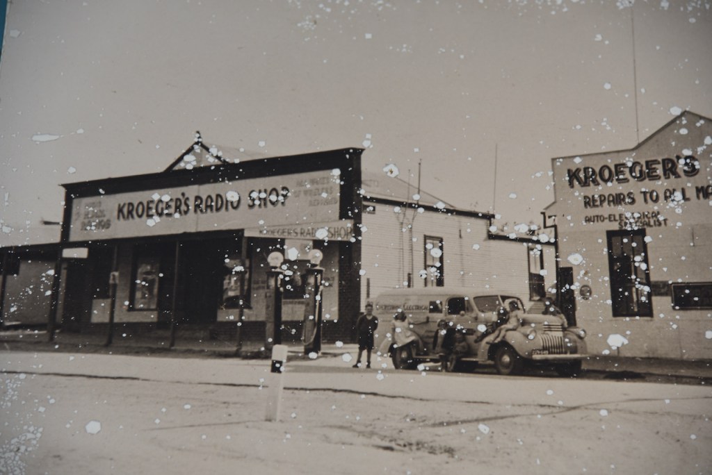 With the arrival of broadcasting came the sales and popularity of battery operated radios. Local businessman Fritz Kroeger sold and services electrical goods, including radios, and offered battery recharge services to the district before the arrival of electrical grids in the 1950’s. Prior to this, Fritz ran his business as an auto electrical mechanic in Loxton.