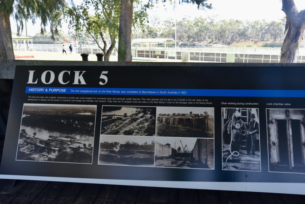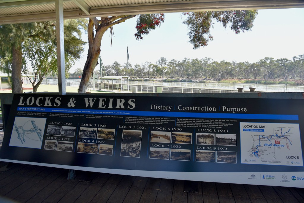 We then stopped to have a look at the Weir and Lock 4 at Bookpurnong near Loxton. During the 1920’s a series of Locks and Weirs were installed along the River Murray. They were built to divert water to the emerging agriculture industry and also to improve navigation of boats along the river. There are six such locks in the Riverland region of South Australia.