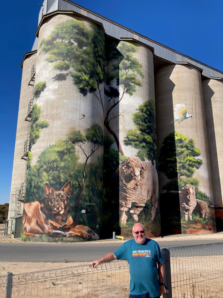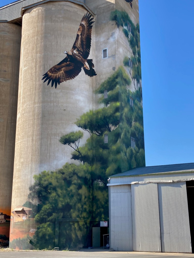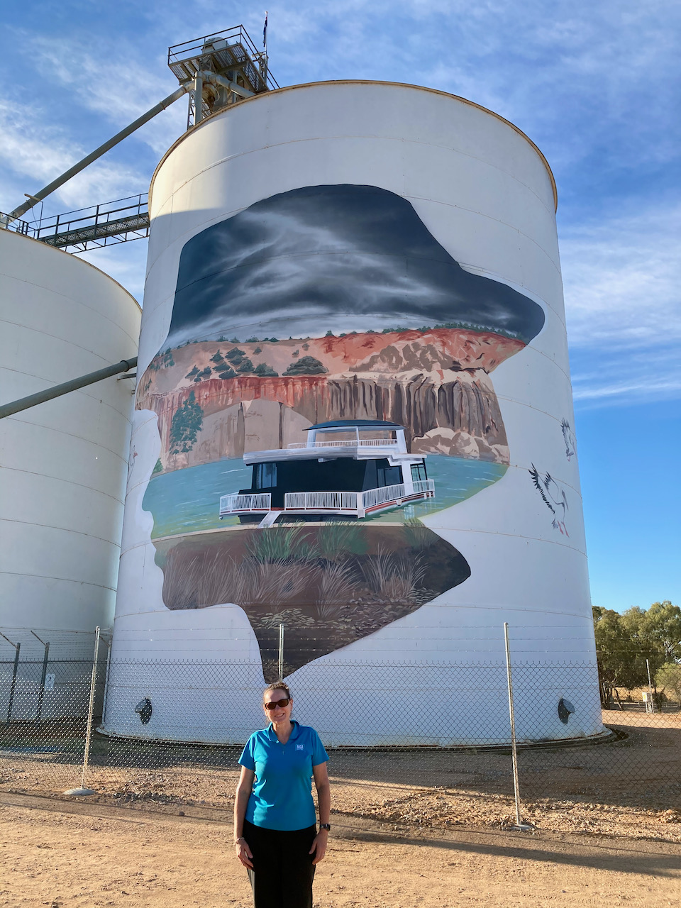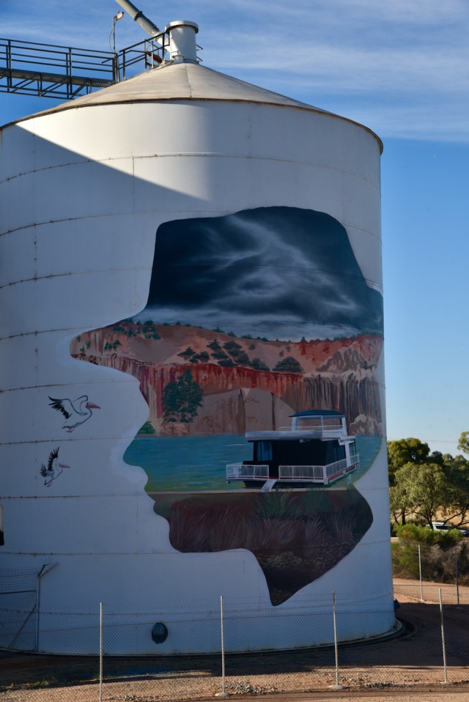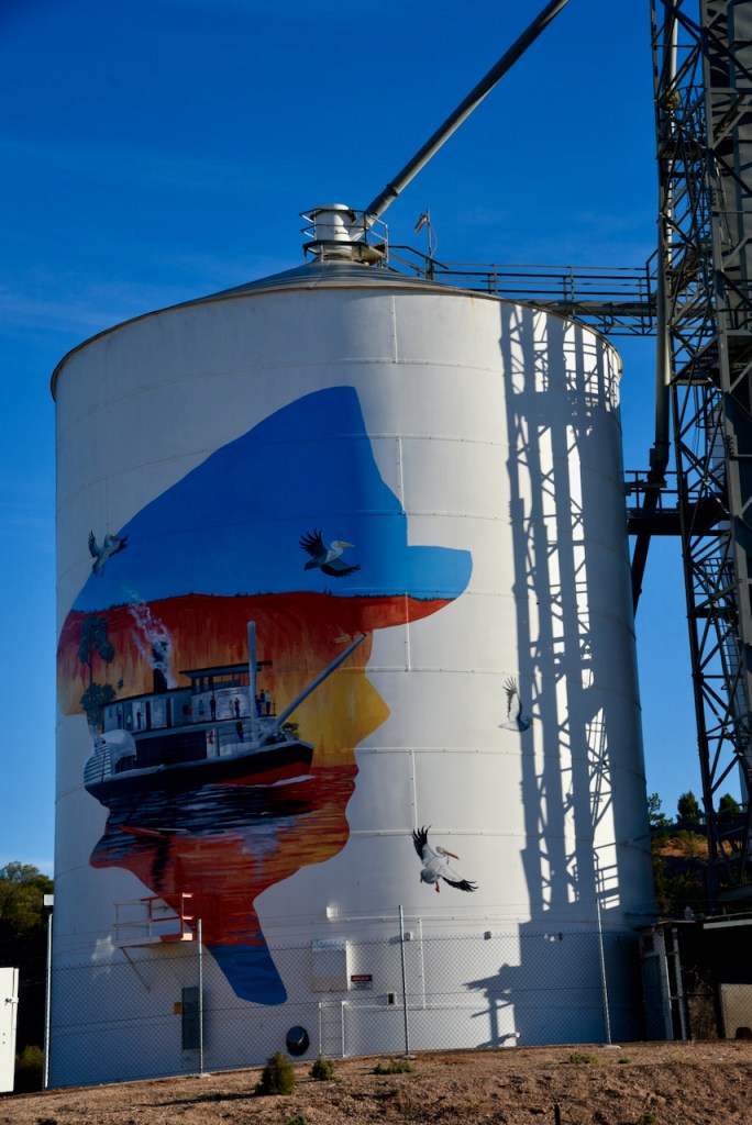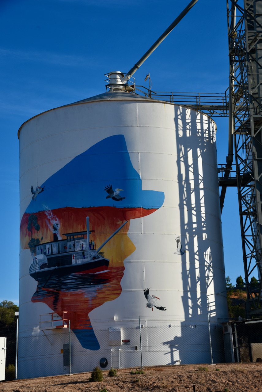 Marija and I then stopped to have a look at the Paringa silo’s which are now part of the Silo Art craze around Australia. The artwork features four prominent people with local connections and is the work of artist Jack Fran. One of those people featured is Renmark born riverboat Captain pearl Wallace who was Australia’s first female riverboat captain. Also featured is David Jones who was better known as ‘Possum’.