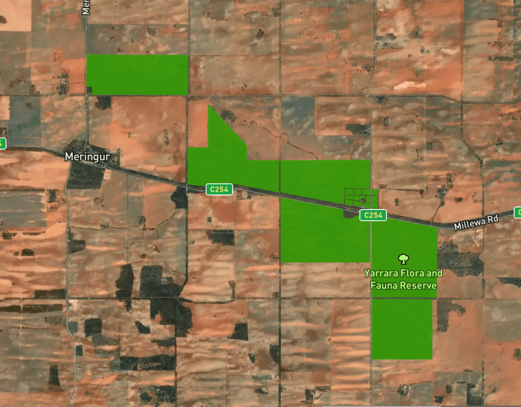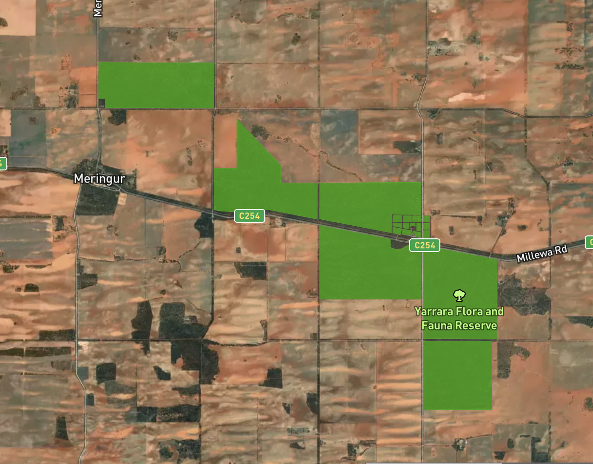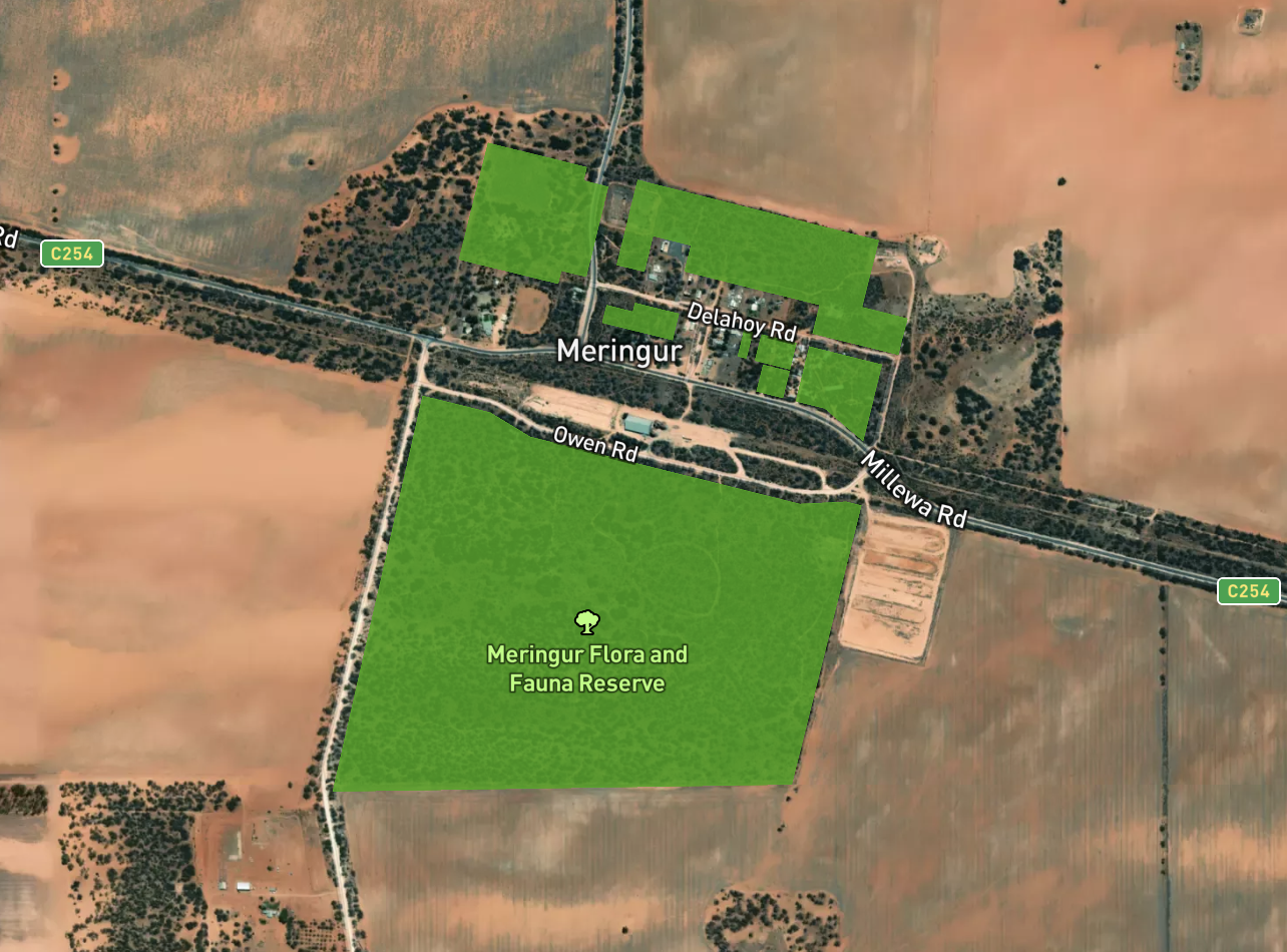 Above:- Map showing the location of the Meringur Flora Reserve. Map c/o Protected Planet.