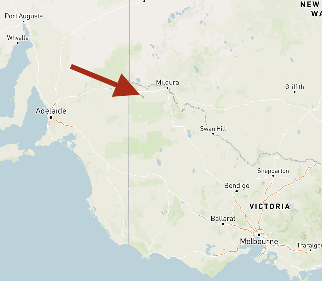 It was now day three of our holiday (8th April 2021). Our destination for today was Mildura in Victoria, a drive of about 137 km from Renmark. Our plan was to active three parks and do some sightseeing along the way. Our first planned park activation for the day was to be the Meringur Flora Reserve VKFF-2383 which is located about 88 km west of Mildura in north-western Victoria.