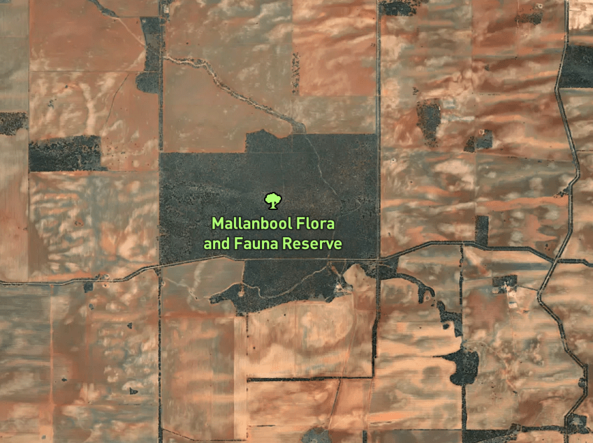 Above:- Map showing the location of the Mallanbool Flora Reserve. Map c/o Protected Planet.
