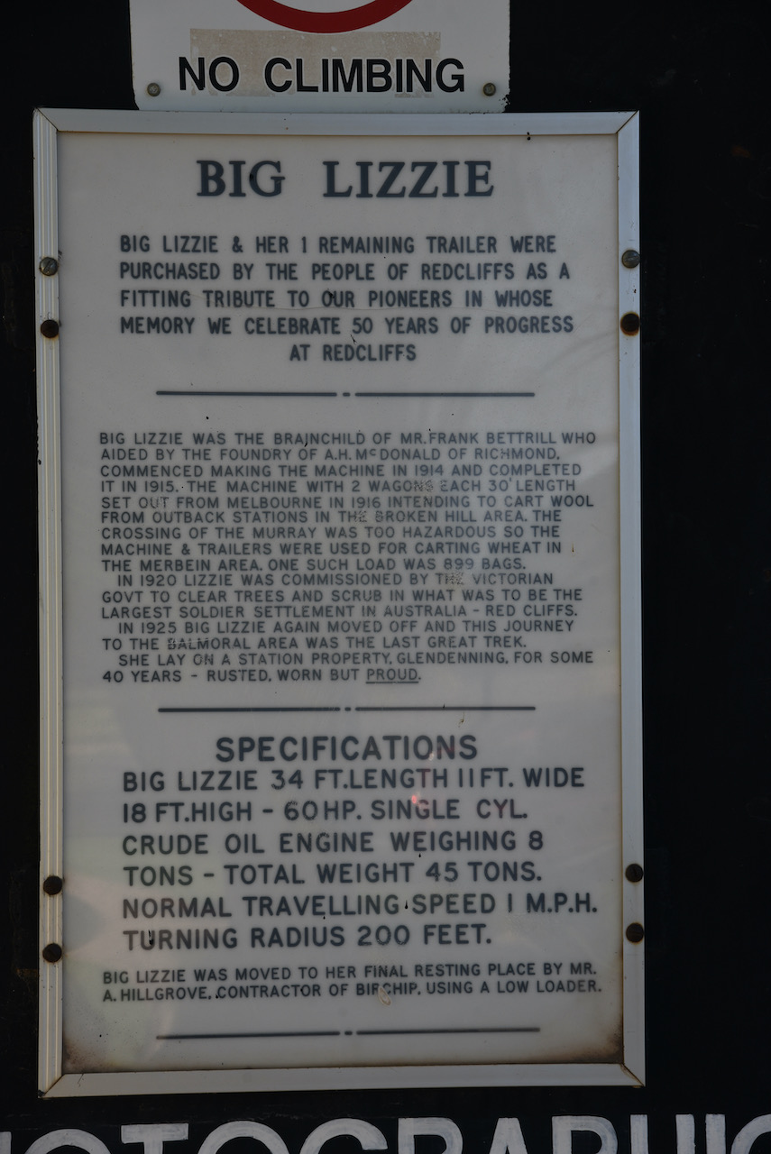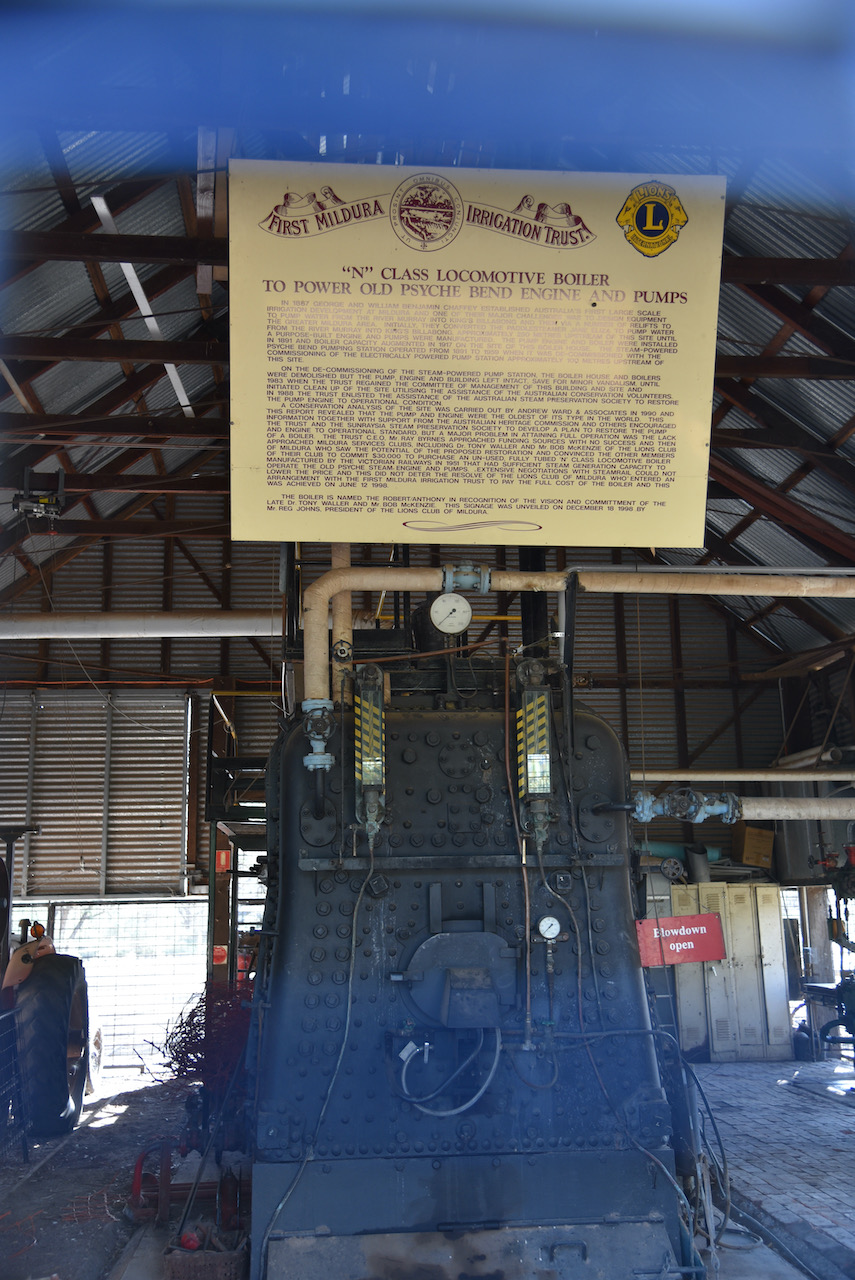 After breakfast we headed out of Mildura to the little town of Merbein where we stopped briefly to look at an old Thompson Centrifugal Irrigation Pump which was commissioned in September 1920 and decommissioned in 2015.