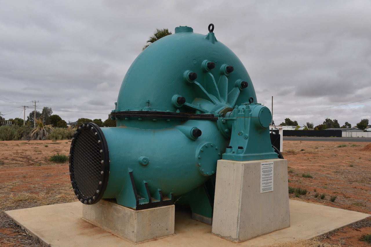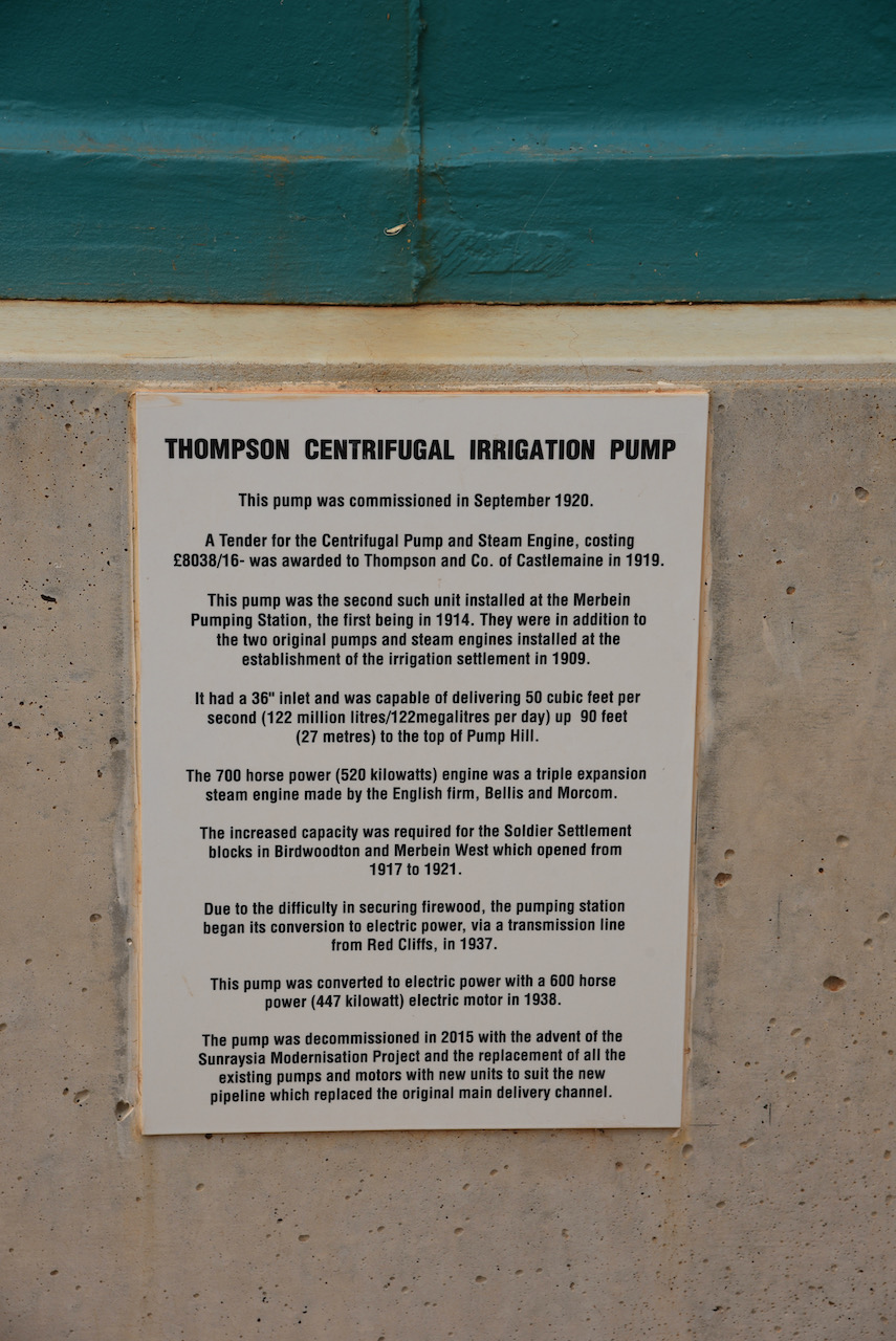 After breakfast we headed out of Mildura to the little town of Merbein where we stopped briefly to look at an old Thompson Centrifugal Irrigation Pump which was commissioned in September 1920 and decommissioned in 2015.