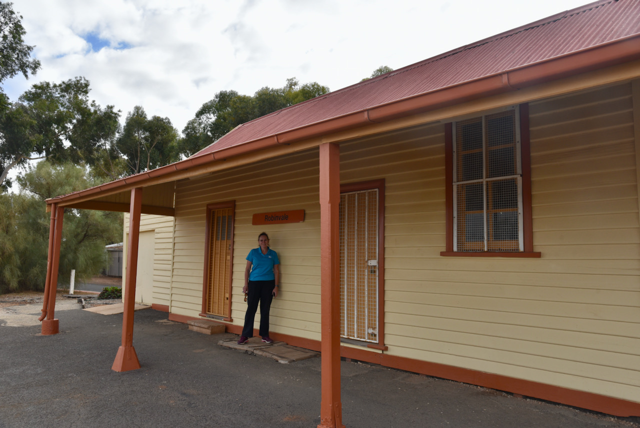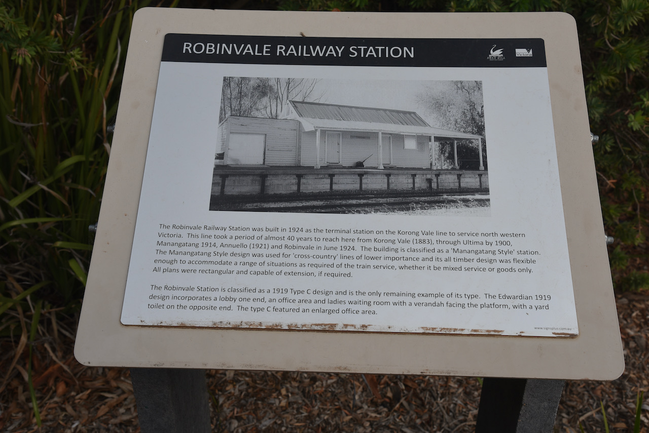 While at the Visitor Info Centre we had a look at the old Robinvale Railway Station. It was built in 1924 at the terminal station on the Korong Vale line to service north western Victoria. This line took a period of almost 40 years to reach from Korong Vale. The Robinvale Station is classified as a 1919 Type C design and is the only remaining example of its type. The Edwardian 1919 design incorporates a lobby one end, an office area and ladies waiting room with a verandah facing the platform, with a yard toilet on the opposite end.