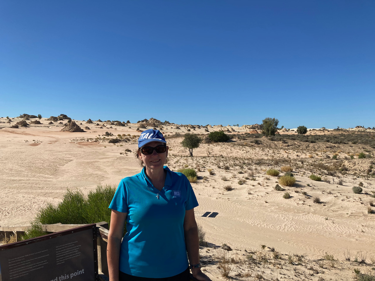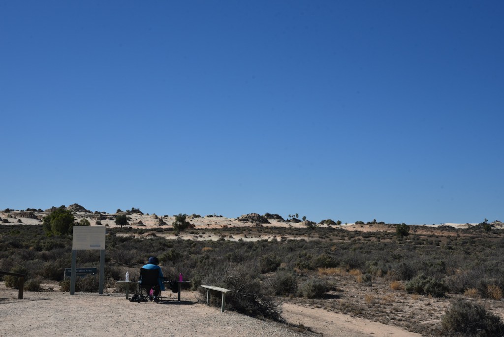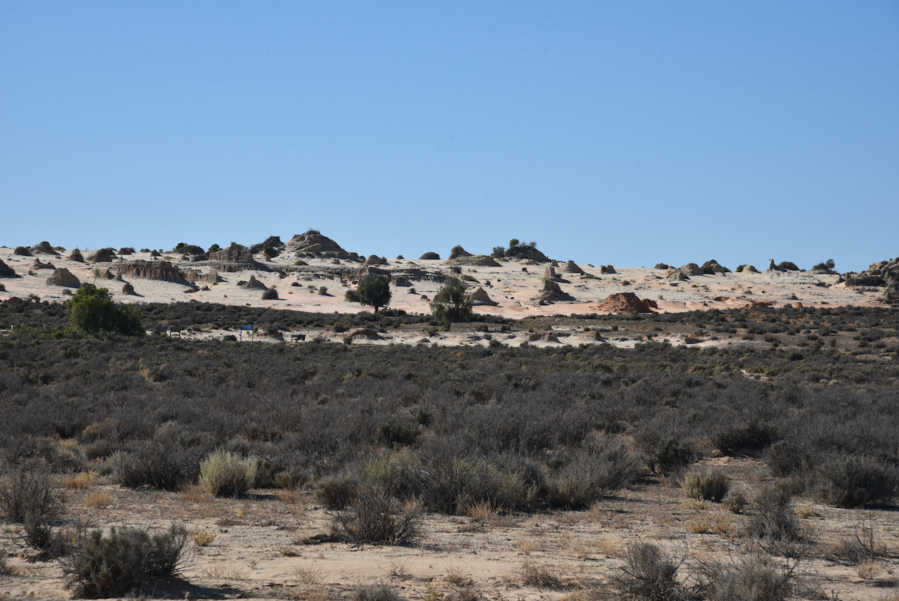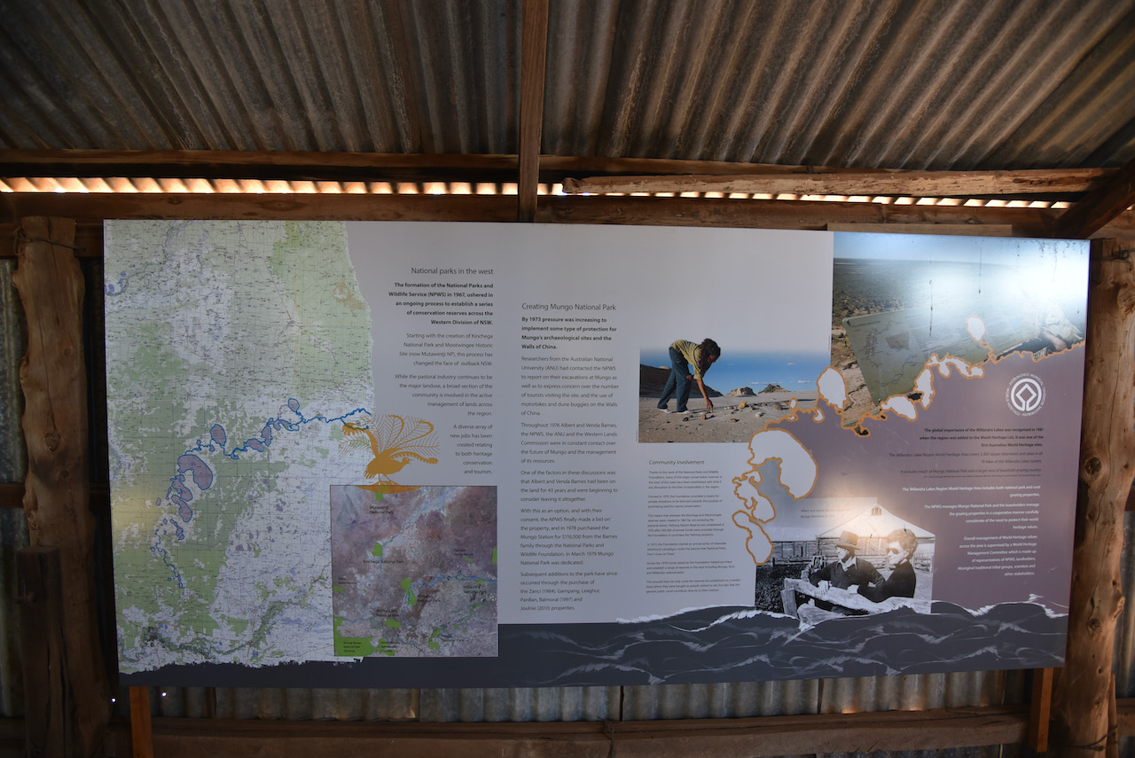 After about 90 minutes we reached the Mungo National Park and stopped briefly at the information board and the park sign for a photo.
