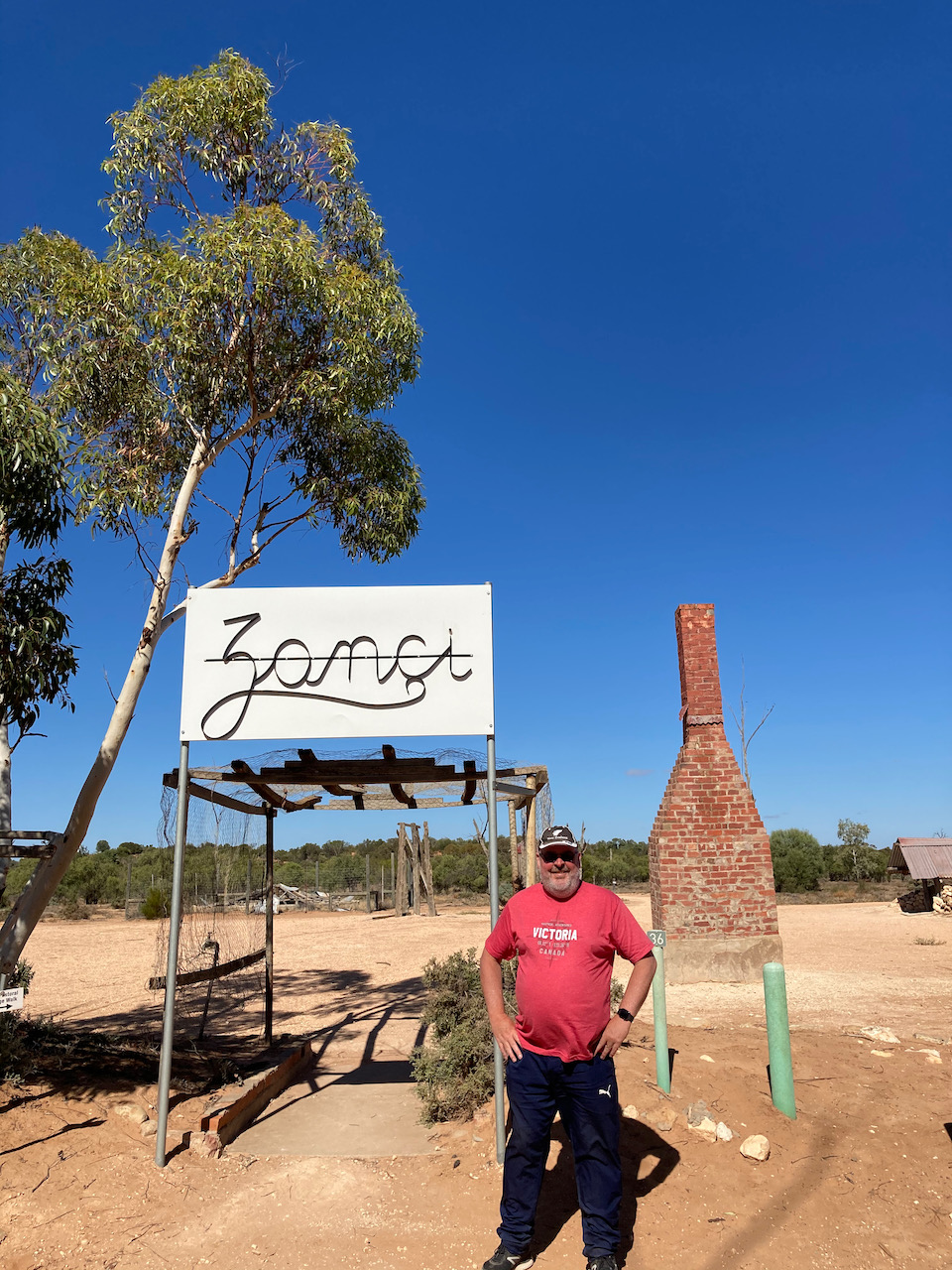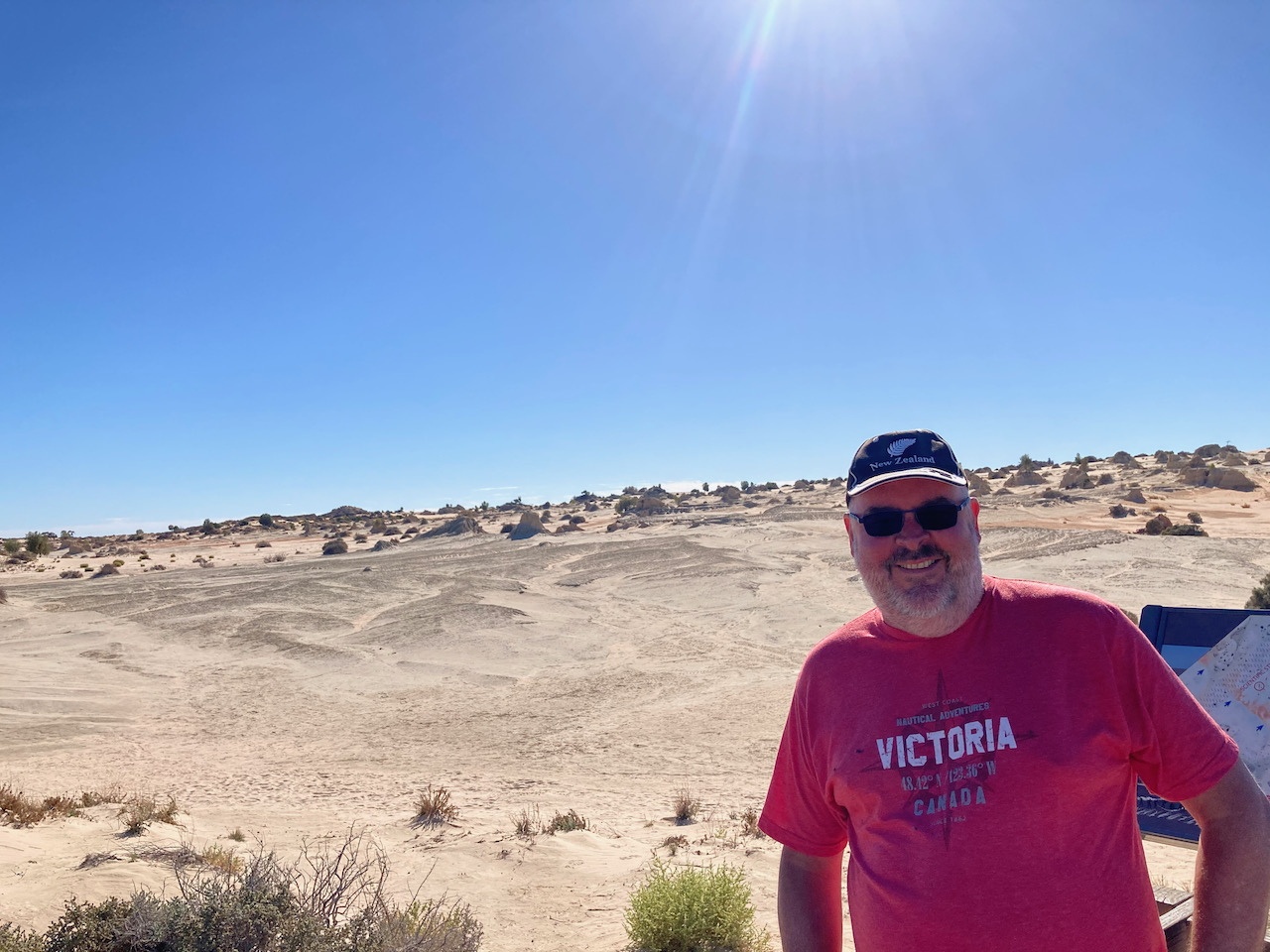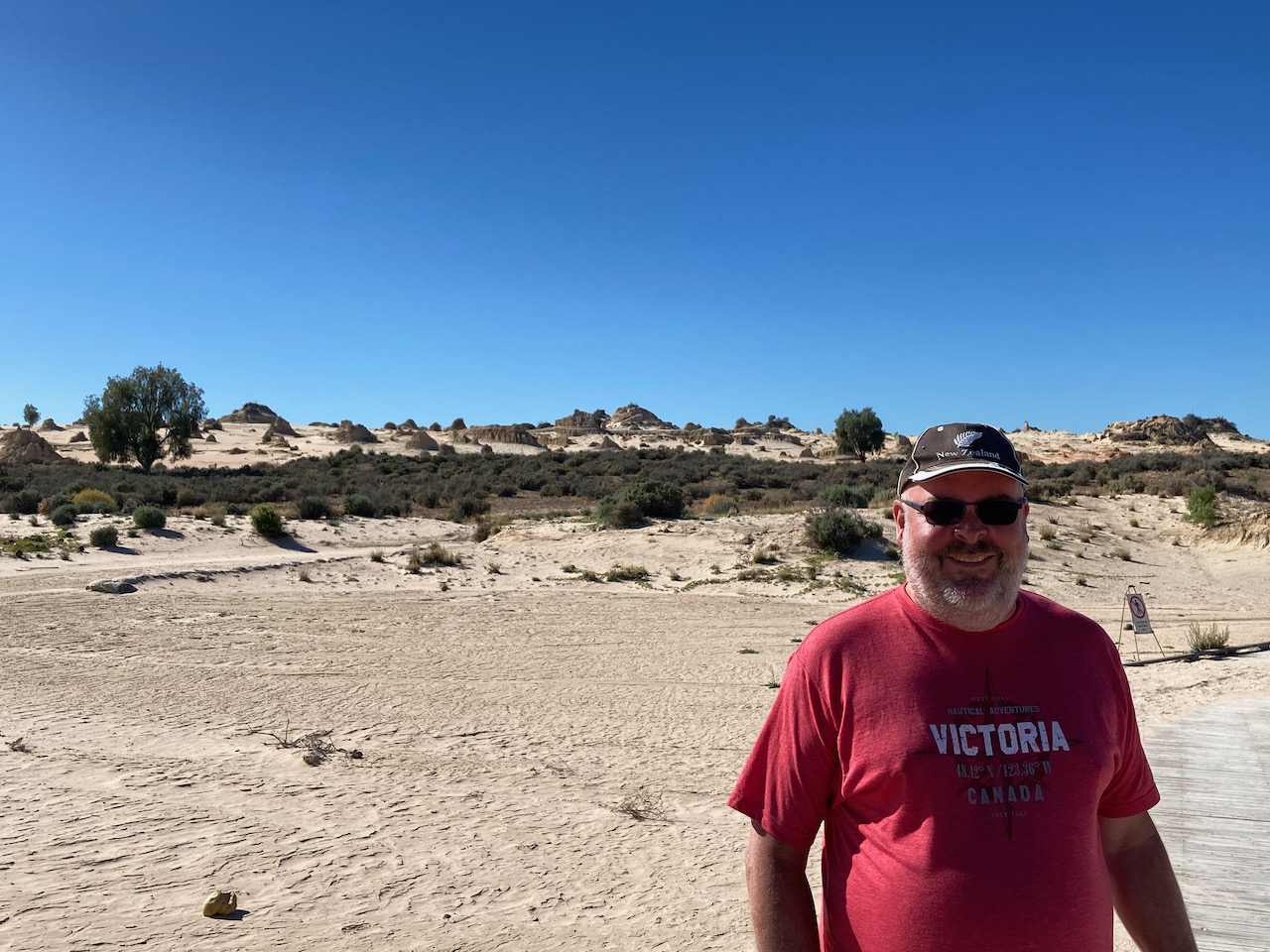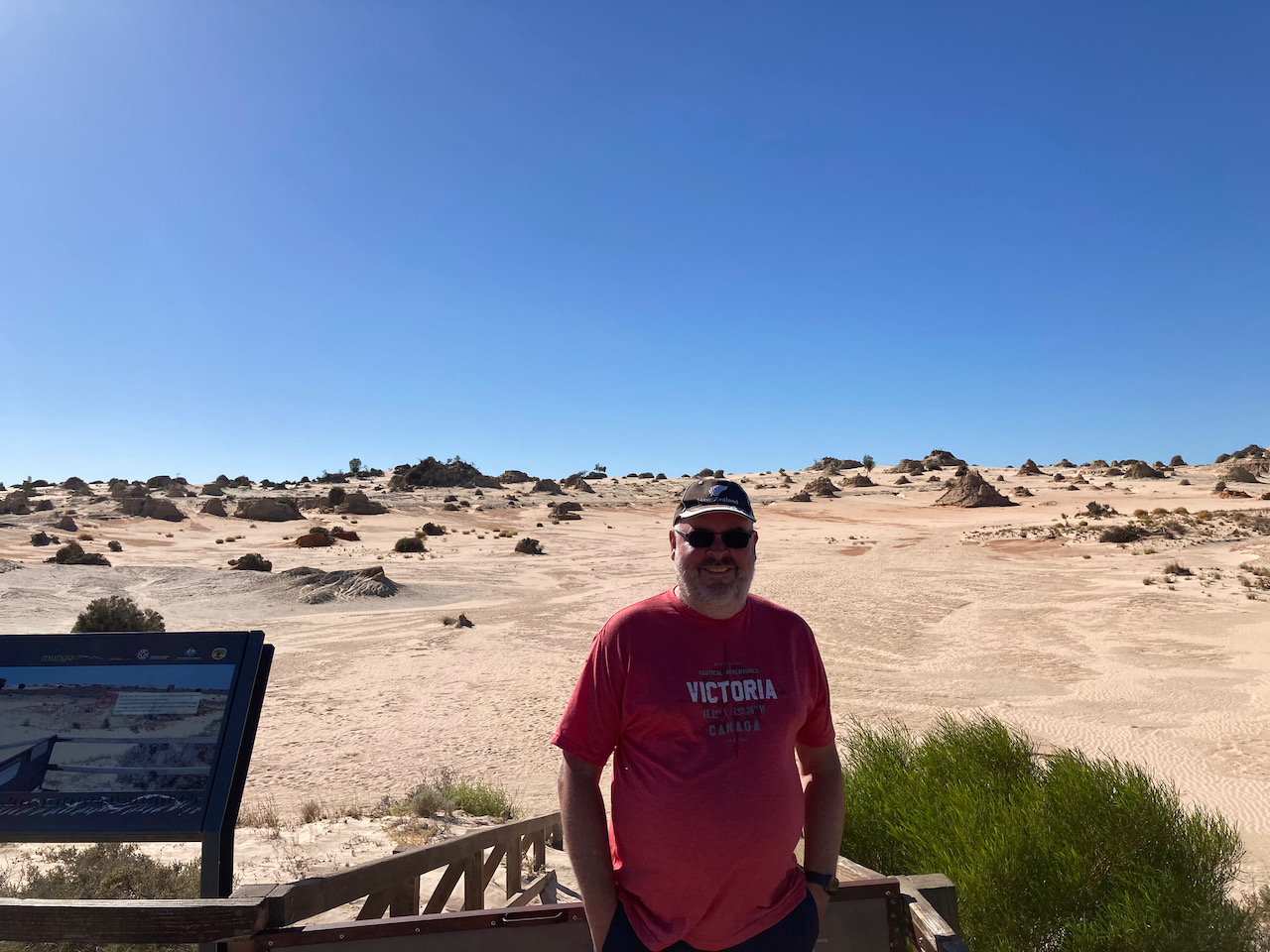 After about 90 minutes we reached the Mungo National Park and stopped briefly at the information board and the park sign for a photo.