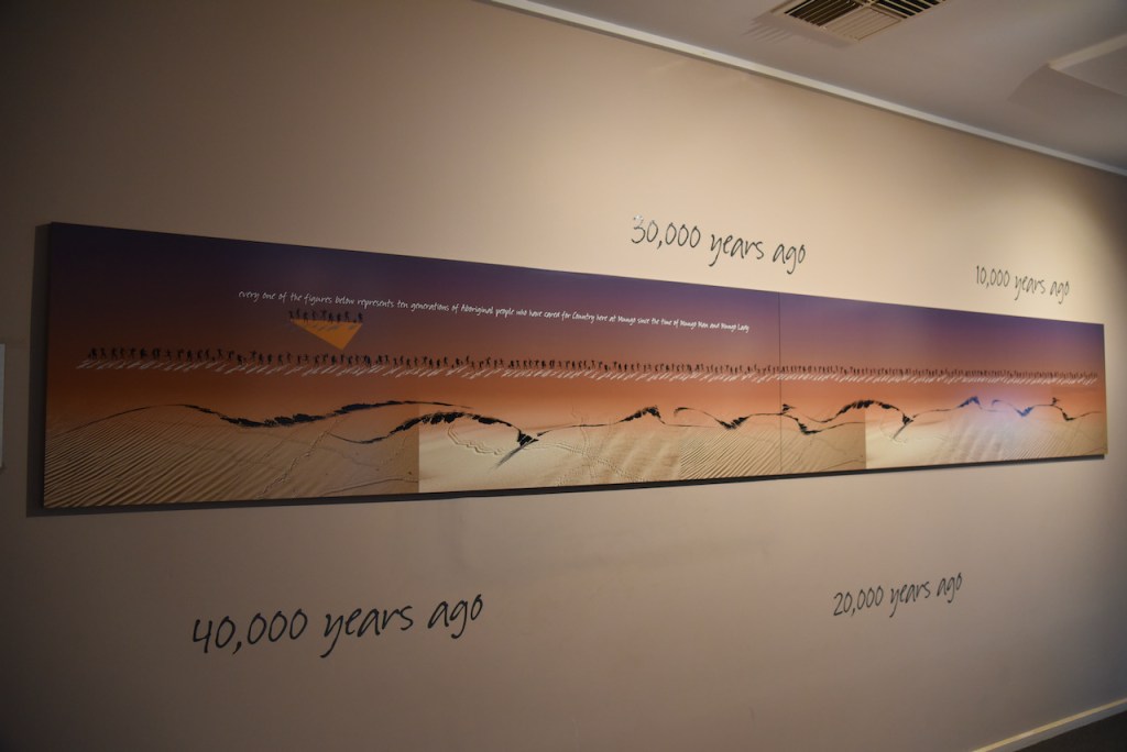 One of the wall displays (seen below) put everything into perspective. Every one of the figures shown represented ten generations of aboriginal people who have lived at Mungo.